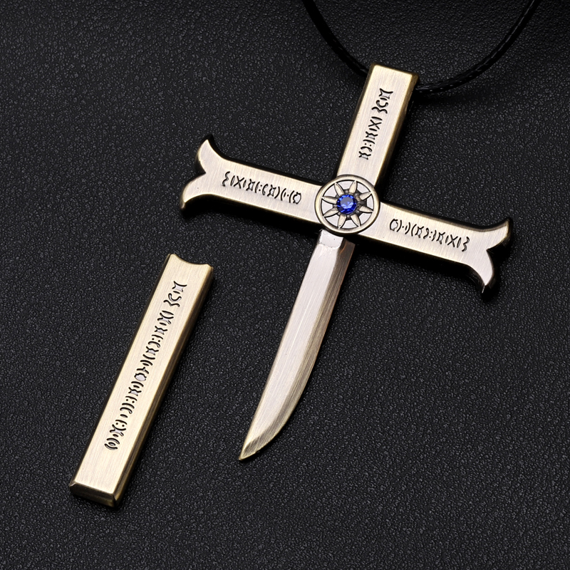 海贼王鹰眼项链同款吊坠黑刀夜挂件动漫周边cos免费刻字十字架男