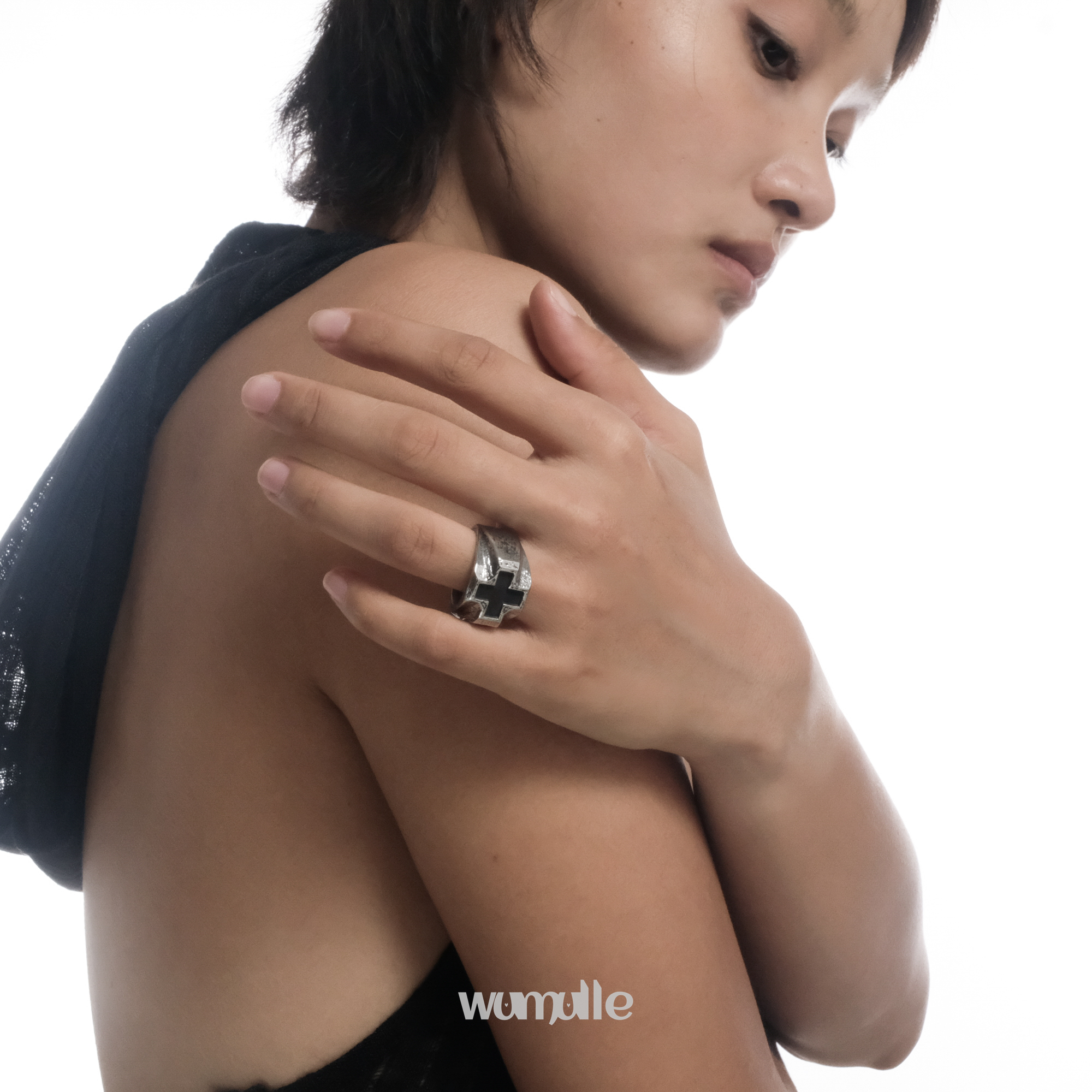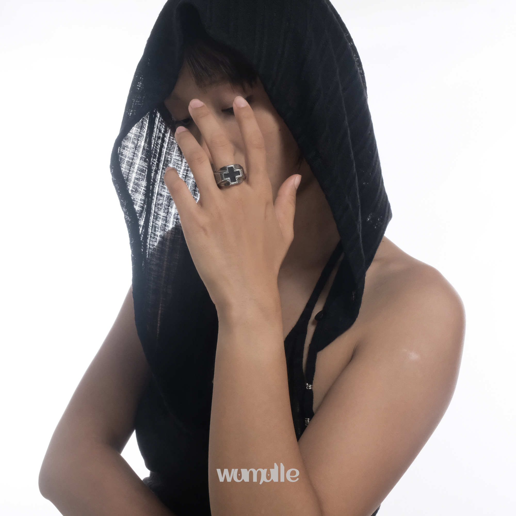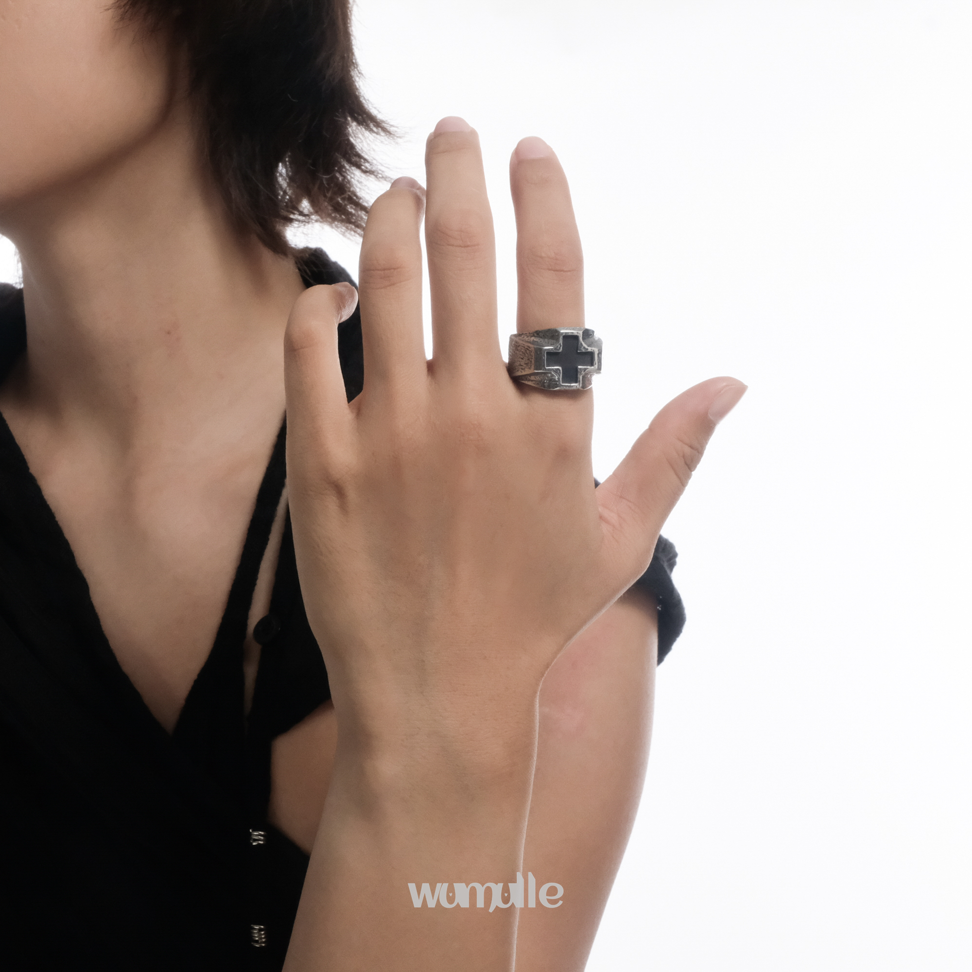 wumulle 重工十字架戒指朋克中性亚文化 指环复古做旧款少年男女