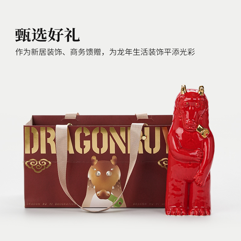 景德镇官方陶瓷创意龙年装饰品家用办公室客厅玄关桌台面摆件送礼