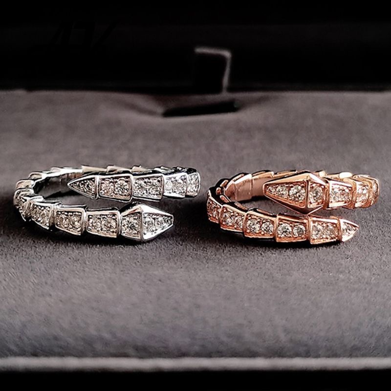 蛇形戒指女莫桑钻蛇骨指环食指精工求婚戒时尚首饰新款潮黄金