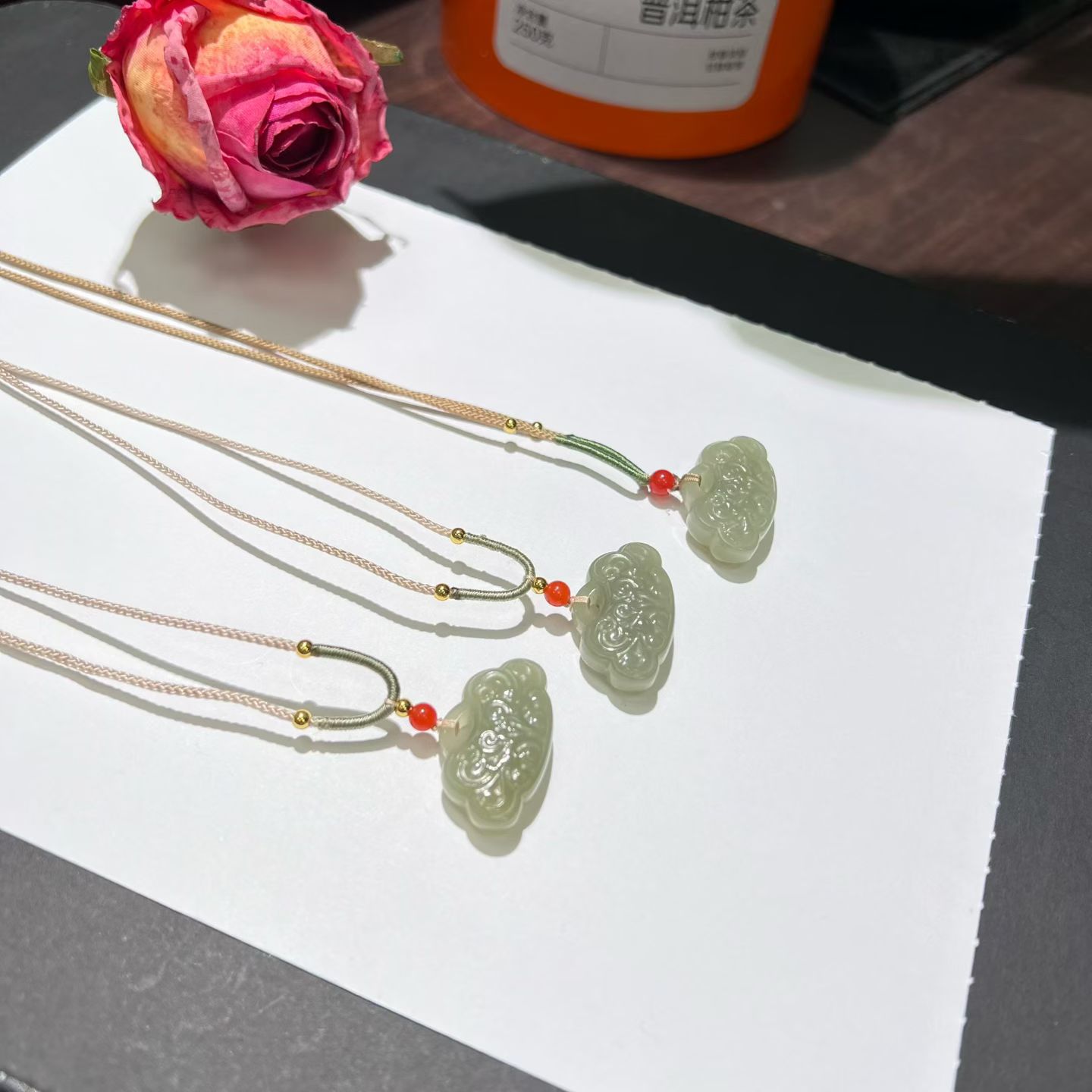 天然和田玉祥云吊坠青白色项坠编织绳链玉石挂件男女款项链玉坠