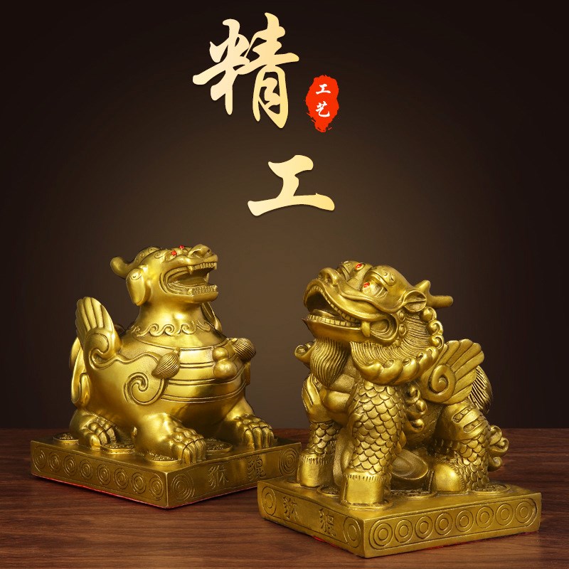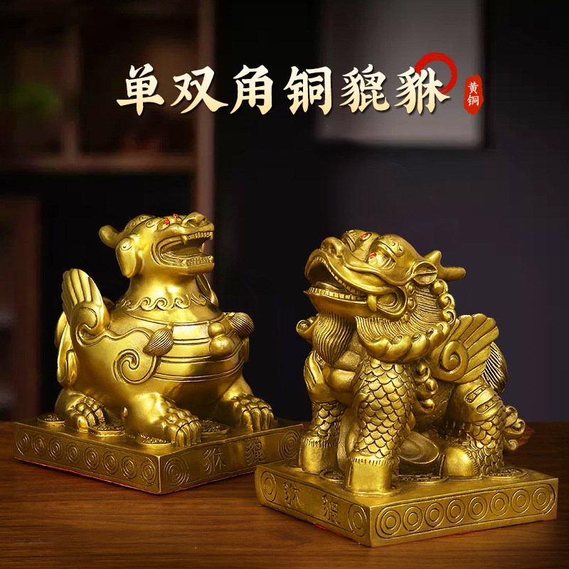 铜貔貅招财摆件一对方底四方皮丘公母大号客厅办公室前台开业礼品