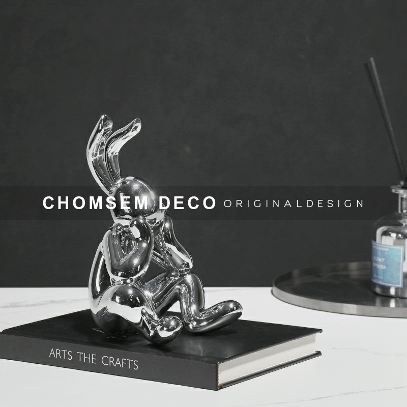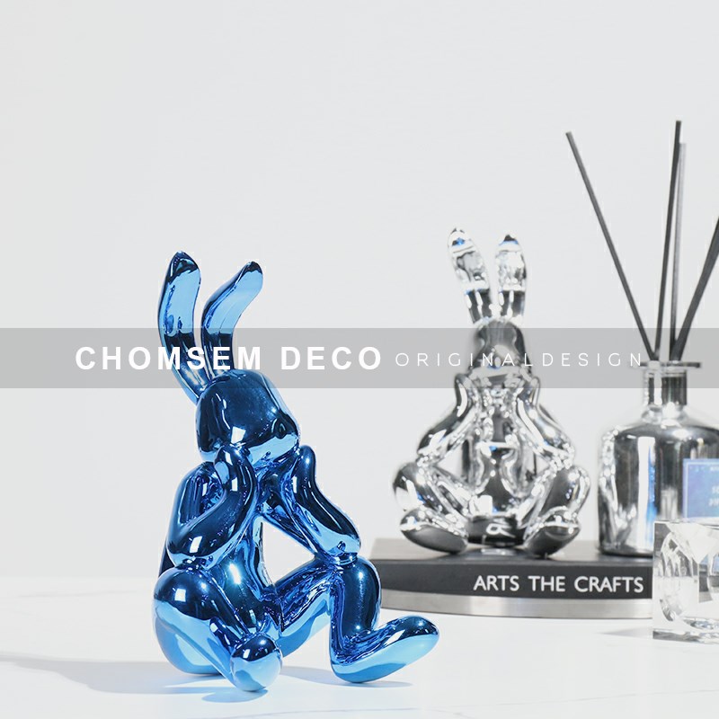 简约现代轻奢创意电n镀树脂兔子软装饰品摆件样板房间展厅桌面摆