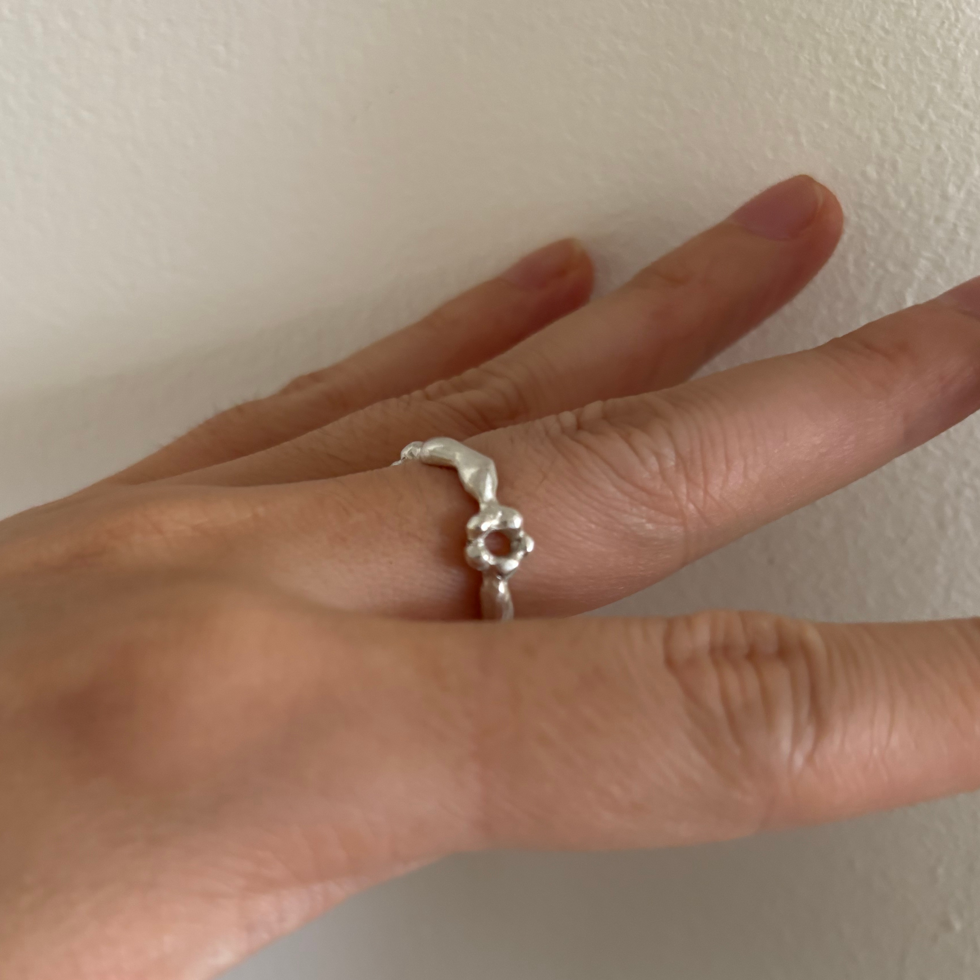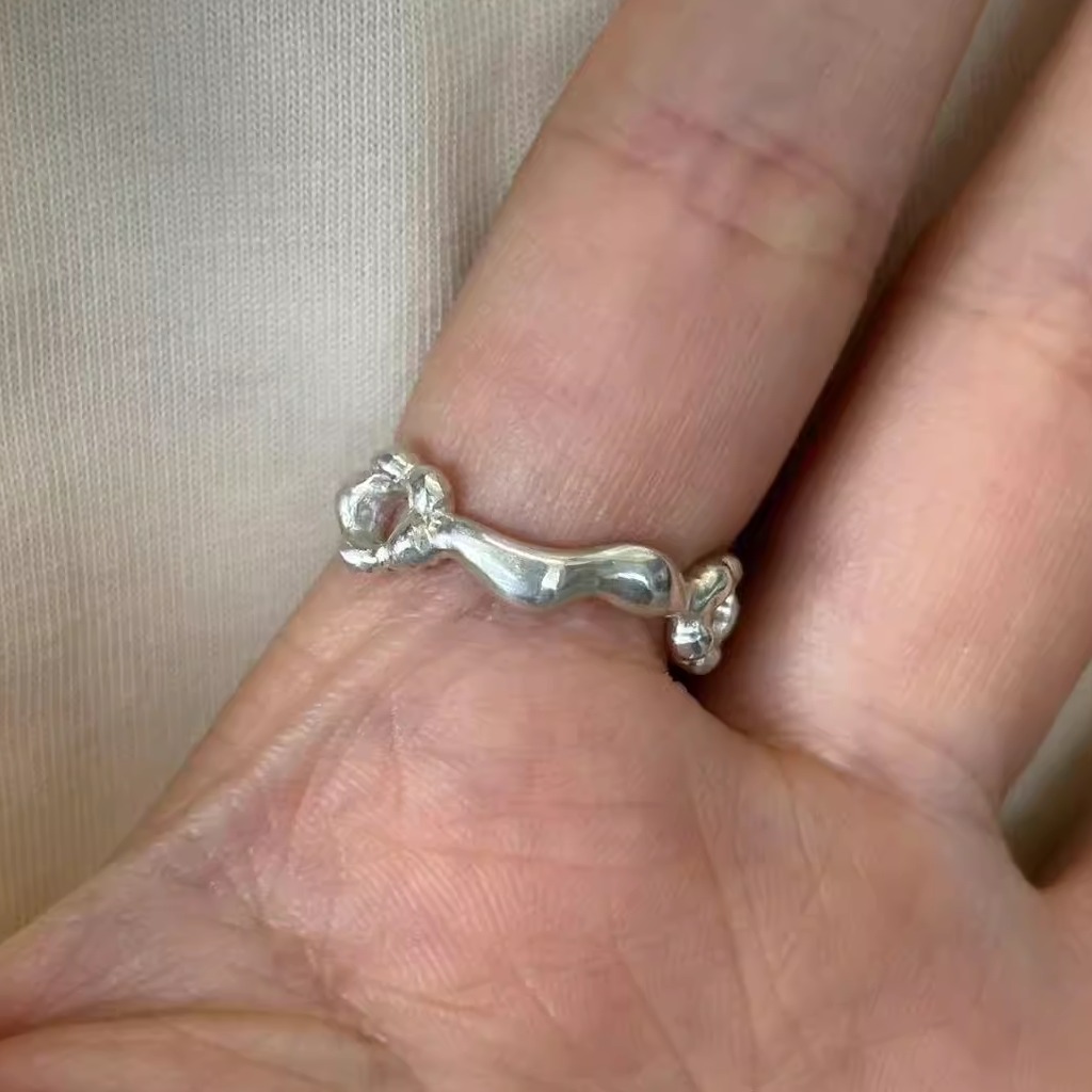 petitquatre纯手工制通体925银树枝不规则镂空花花戒指小众原创