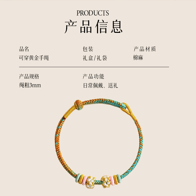遇见普陀山桃花编织绳可穿黄金转运珠半成品手编绳男女旺桃花手链