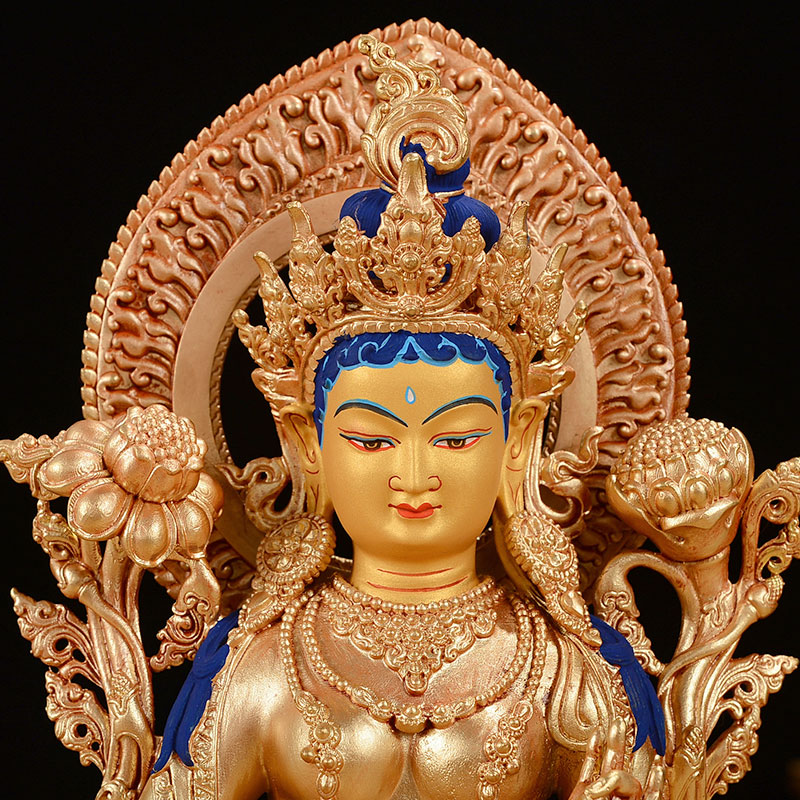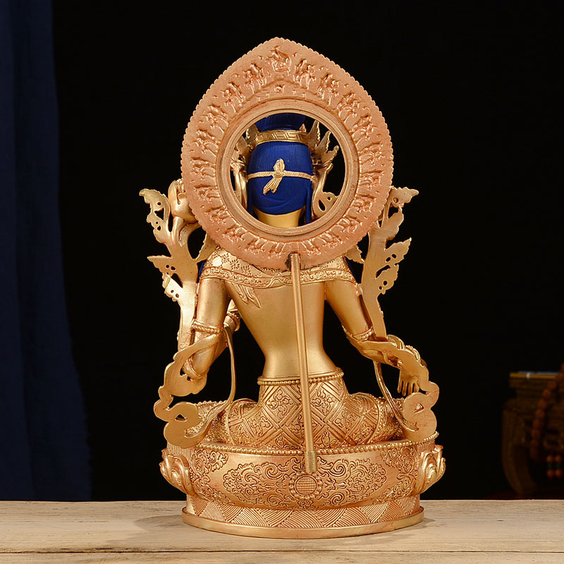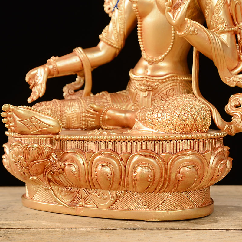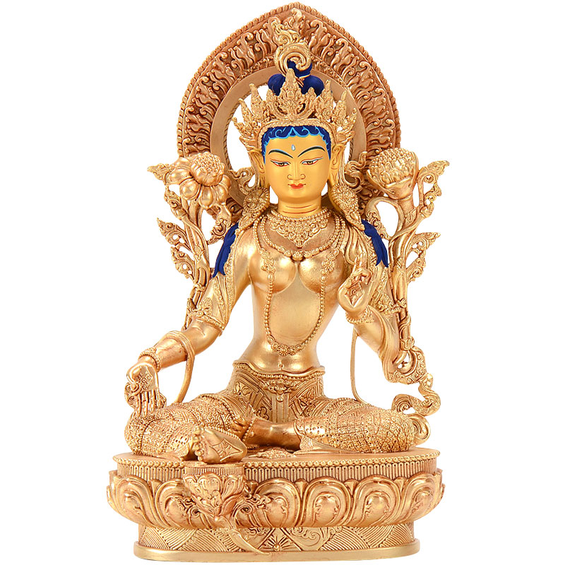 绿度母铜像全鎏金铜7寸用品居家客厅桌面摆件
