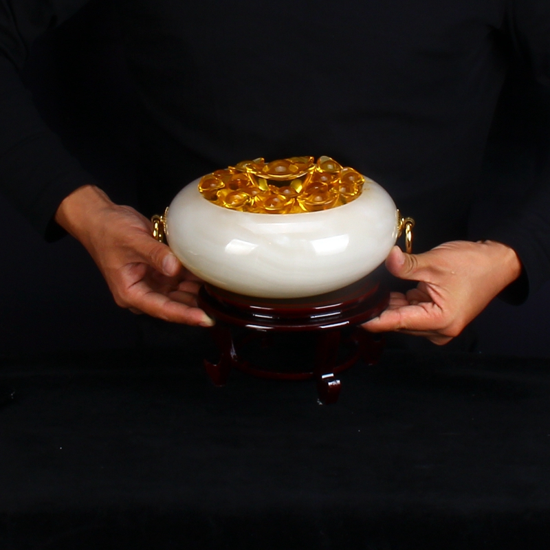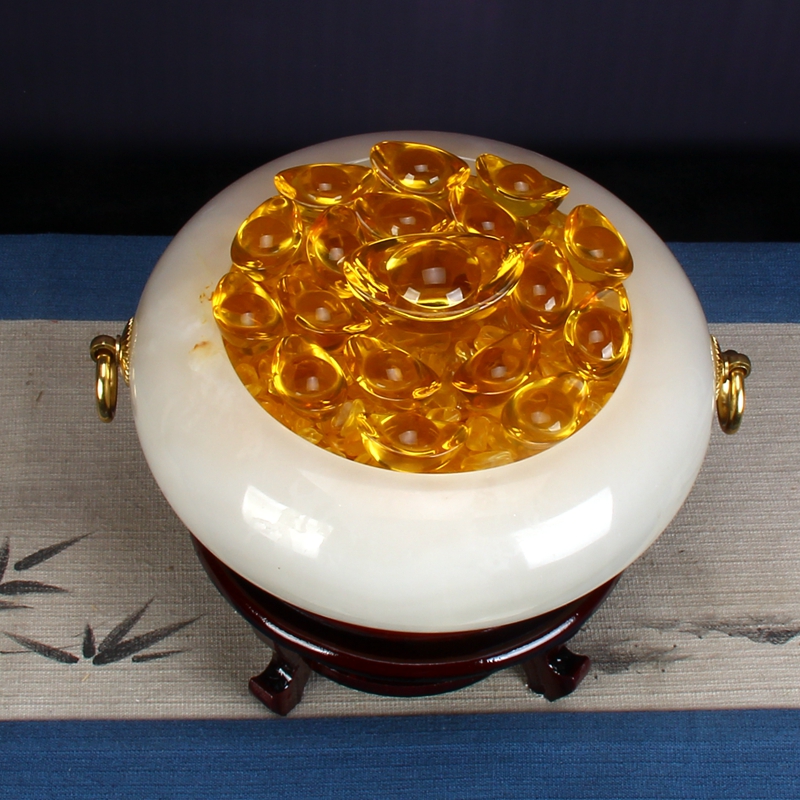 天然阿富汗玉石聚宝盆客厅玄关博古架摆件办公室桌面艺术品摆设