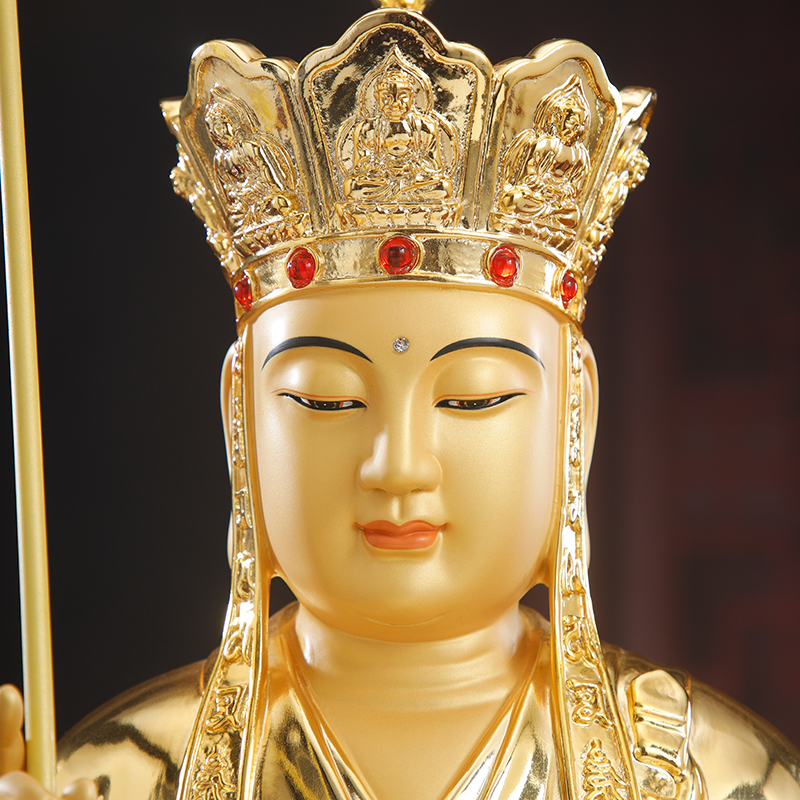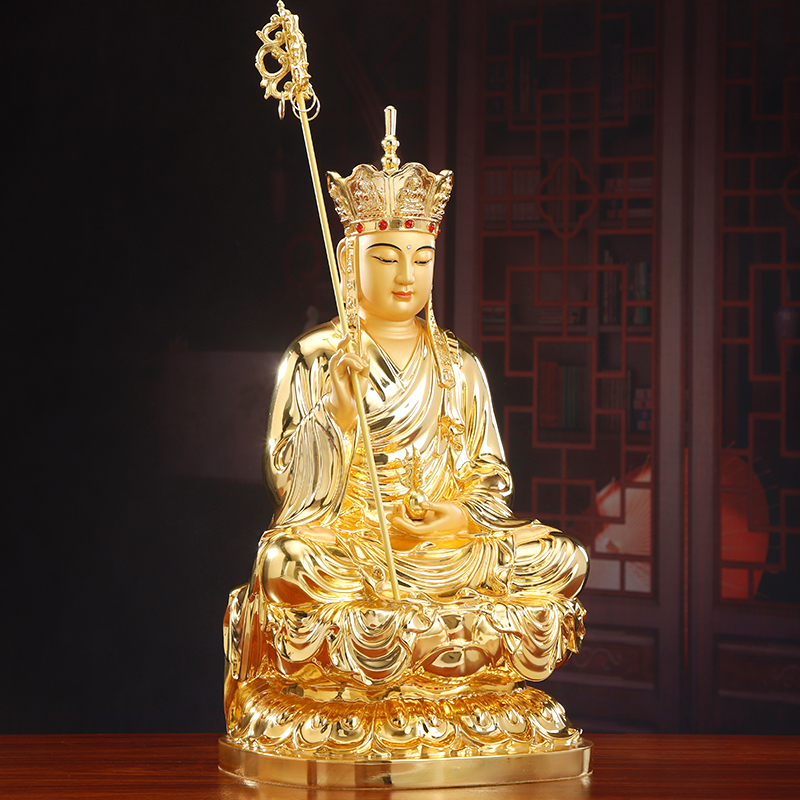 台湾铜雕鎏金地藏王菩萨像家用供奉纳米全金地藏菩萨佛像客厅摆件