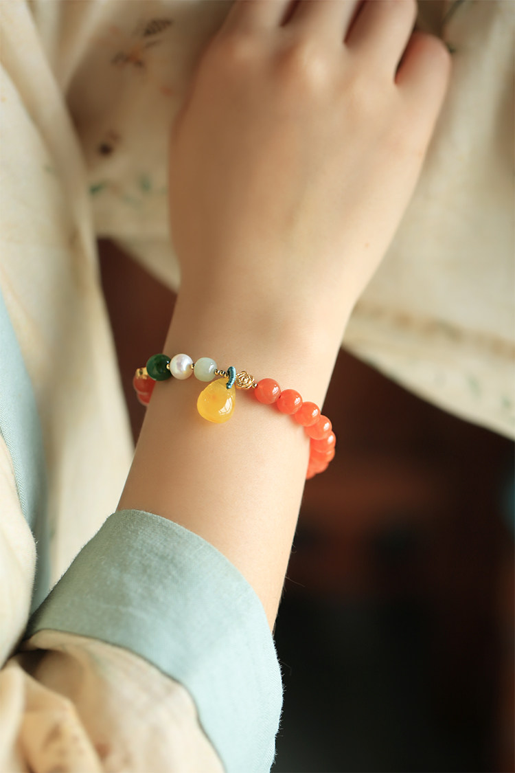 冰飘天然南红手串云南保山多宝玉石红色玛瑙本命年串珠国风手链女