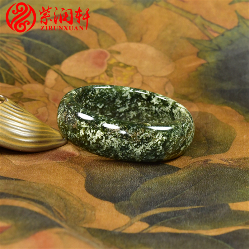 紫润轩新疆和田玉雪花玉籽料手镯青底翠青玉镯55MM宽版哑光收藏级