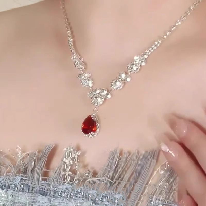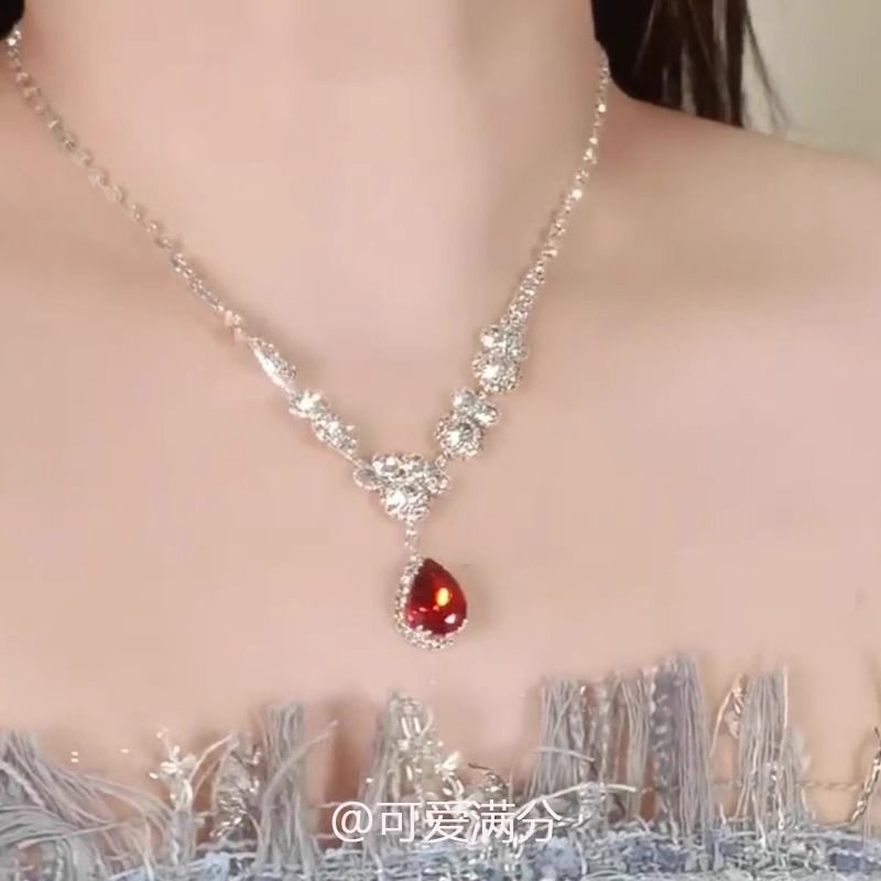 「月光女神」法式超闪红色水钻项链2024新款高级感轻奢小众锁骨链