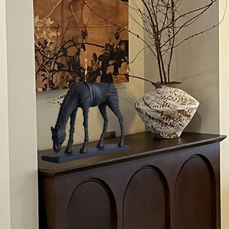 现代轻奢艺术风树脂马摆件客厅样板房售楼处玄关软装创意桌面饰品