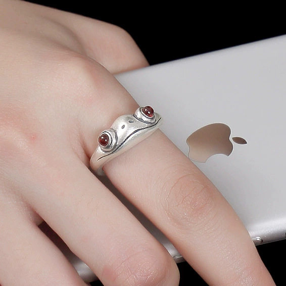 红色眼睛青蛙戒指男潮个性嘻哈风复古滴胶食指戒欧美高级感开口戒