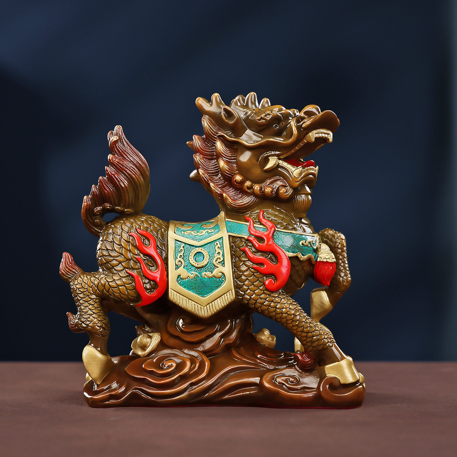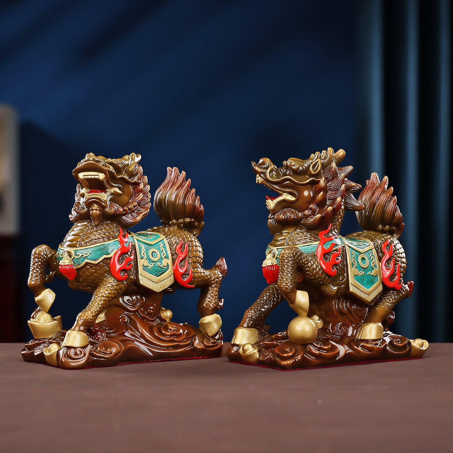 黄铜麒麟摆件一对新中式家居客厅玄关办公室桌面摆设开业乔迁礼品