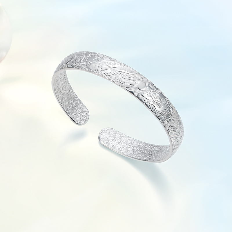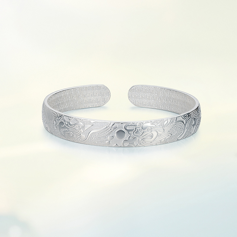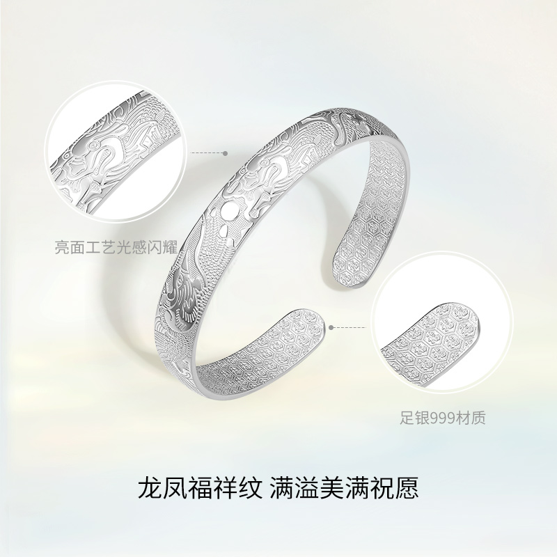 周六福龙凤福纹手镯女S999足银饰福运吉祥节日礼物