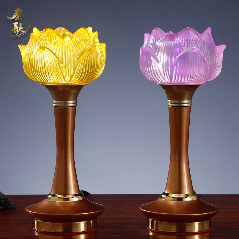 琉璃莲花灯佛供灯佛前供灯 led插电长明灯一对合金观音供佛灯家用