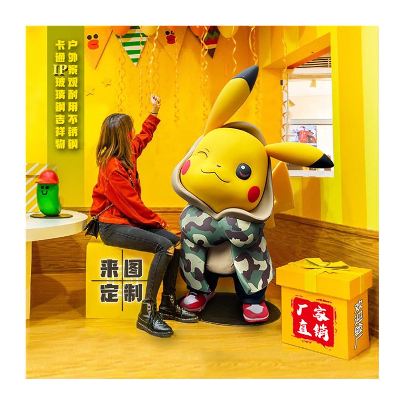 定制玻璃钢卡通吉祥物商场网红迎宾皮卡丘摆件户外城市不锈钢雕塑