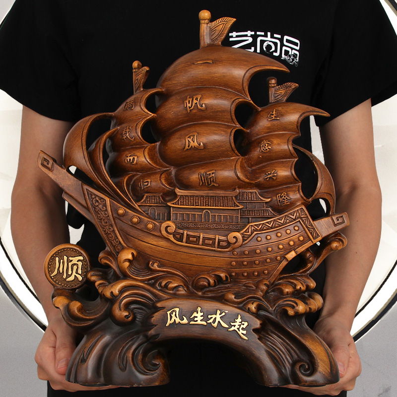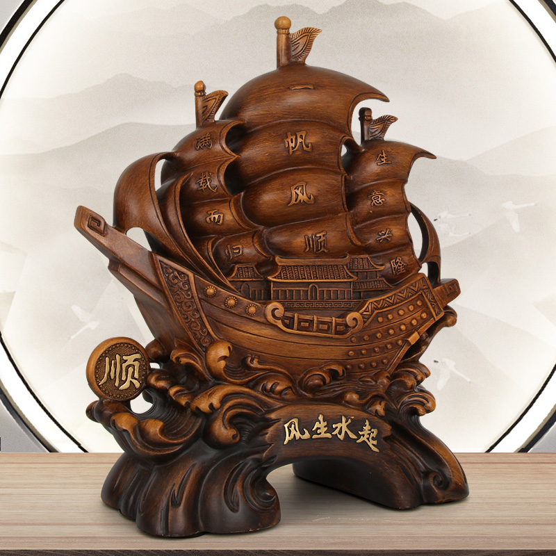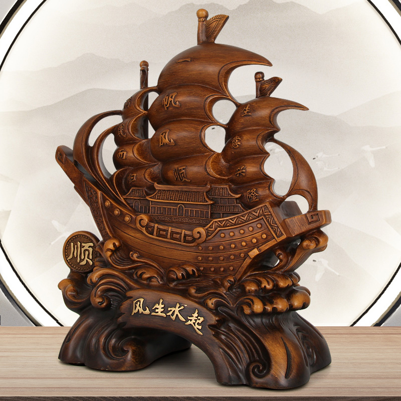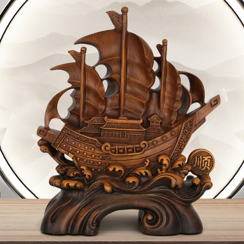 一帆风顺船摆件办公室装饰龙船工艺品书柜博古架酒柜摆设开业送礼