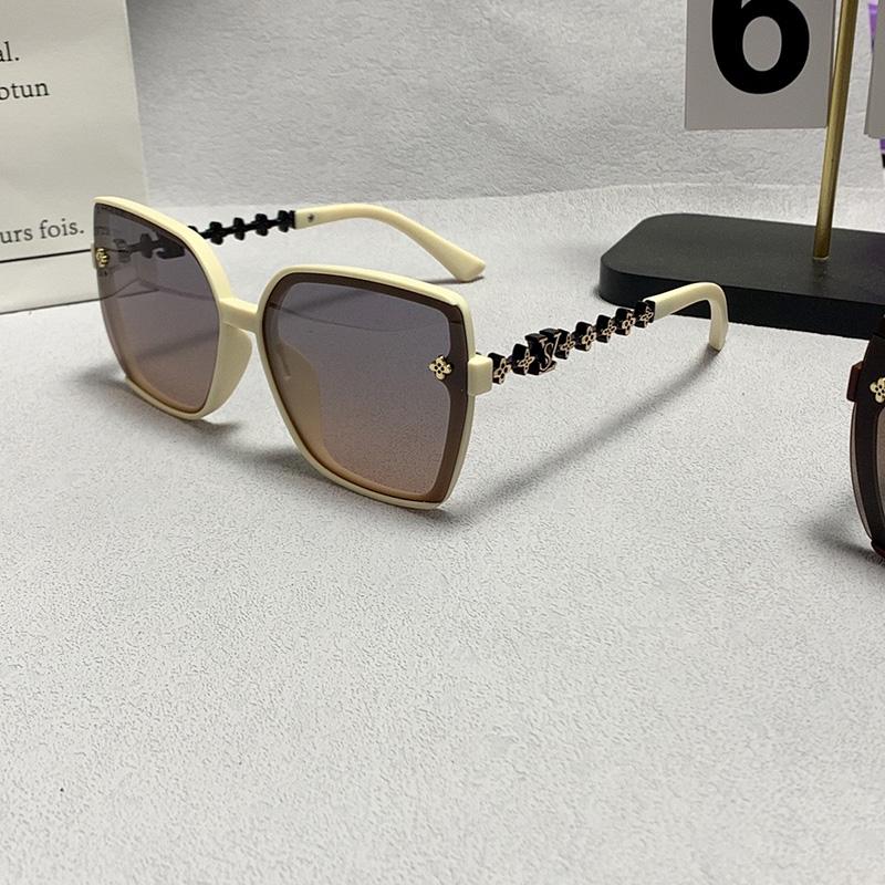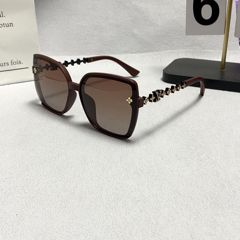 链条墨镜女潮韩版复古山茶花方形遮阳偏光太阳镜网红街拍防晒白色