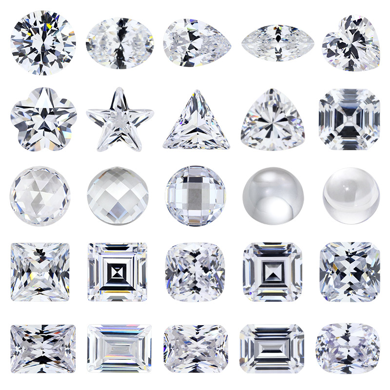 白锆多形状组合 合成立方锆白色透明镶嵌裸石蛋形梨形小八角A*B