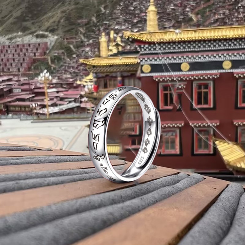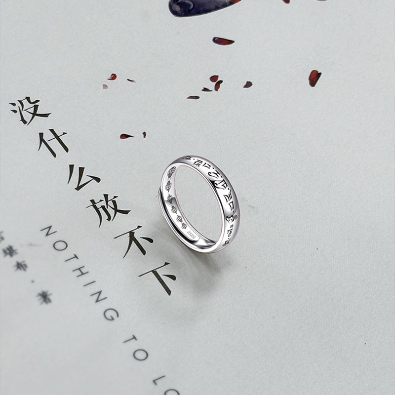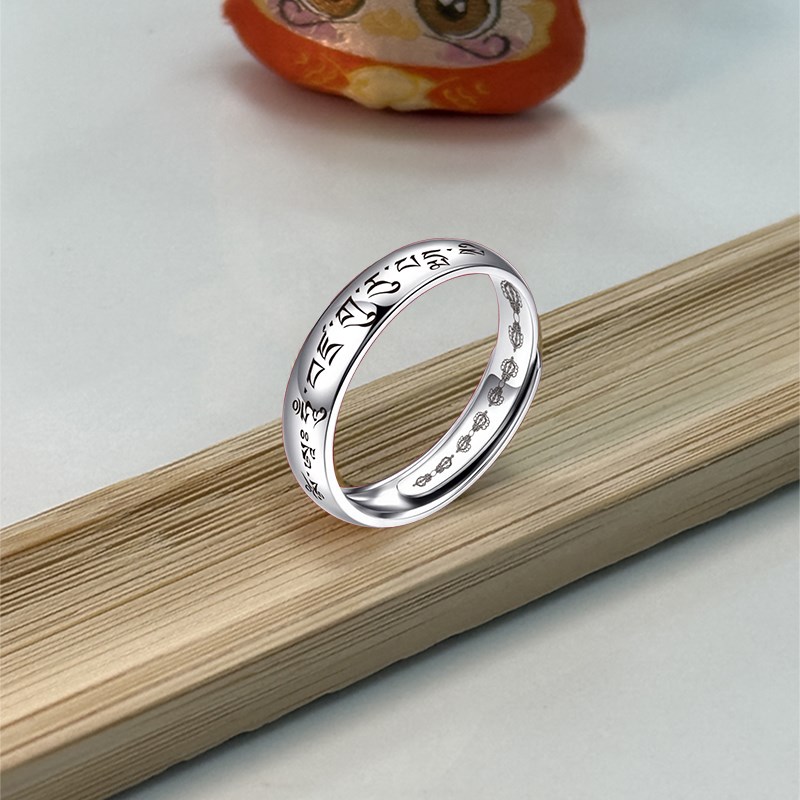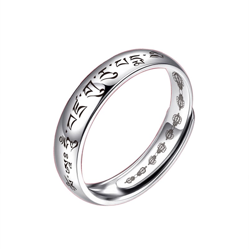 莲师心咒戒指 Sj925银绿度母指环戒 可开口调节刻字定制男女款法