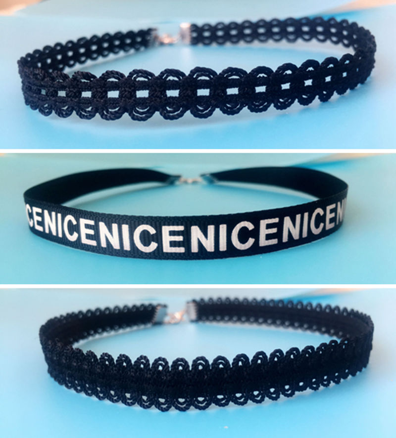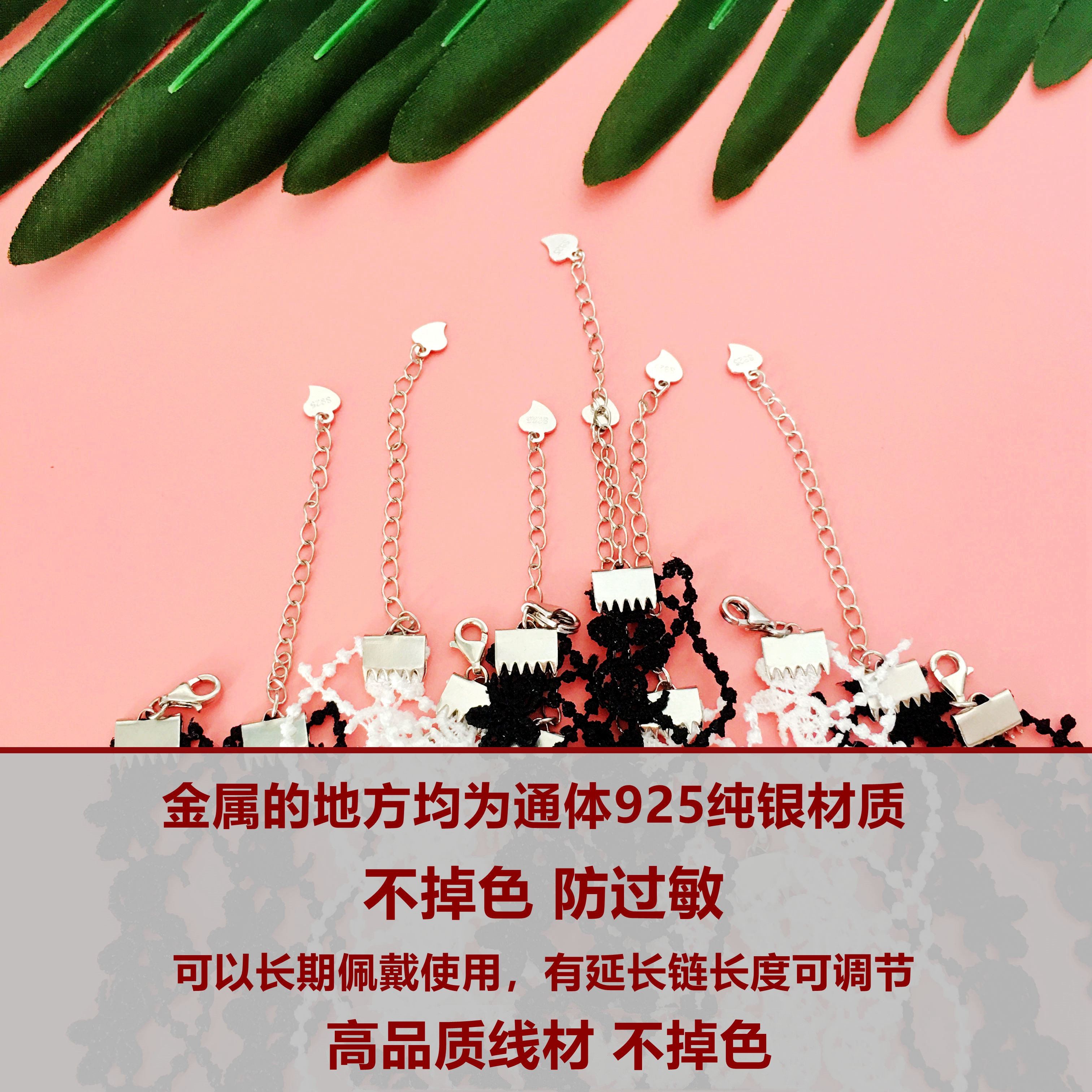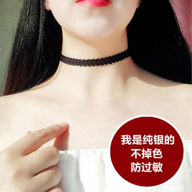 925纯银黑色蕾丝颈带项链锁骨链女choker项圈短款脖链简约日韩饰