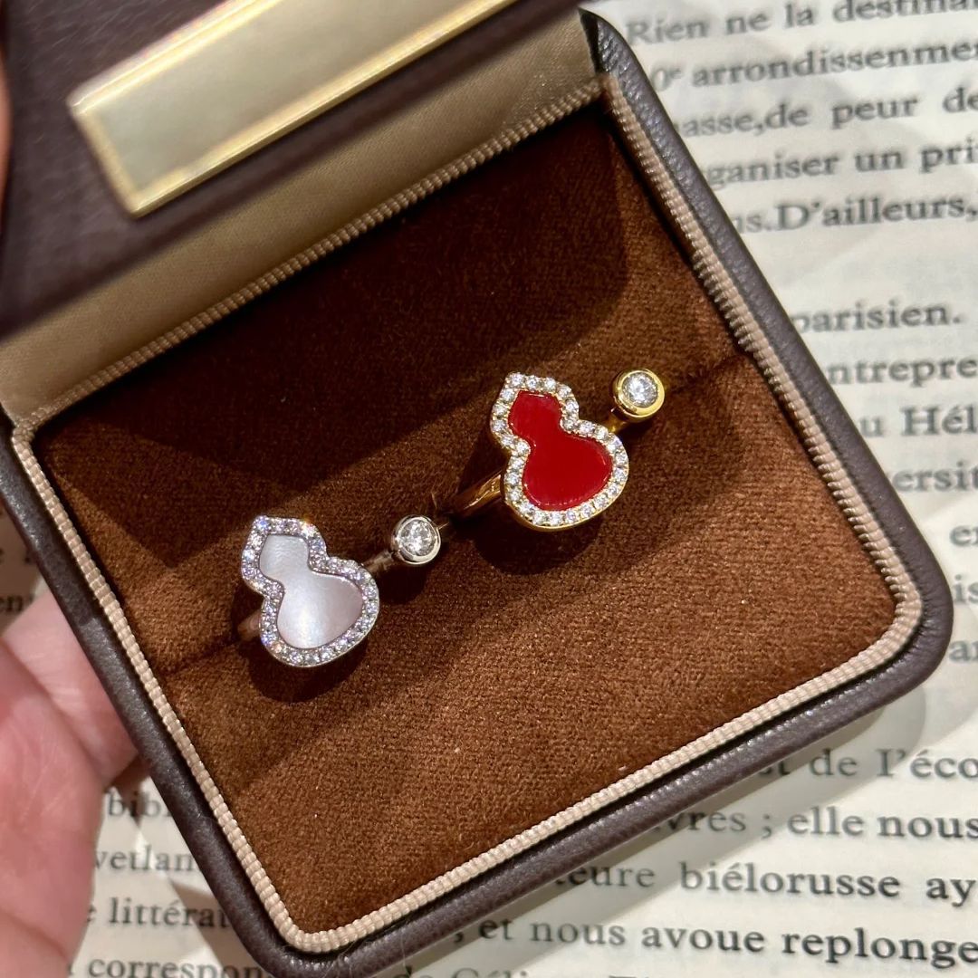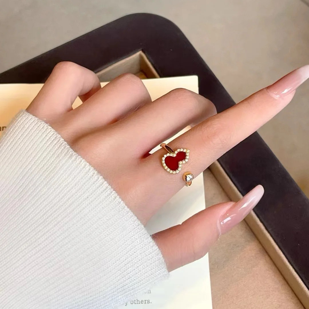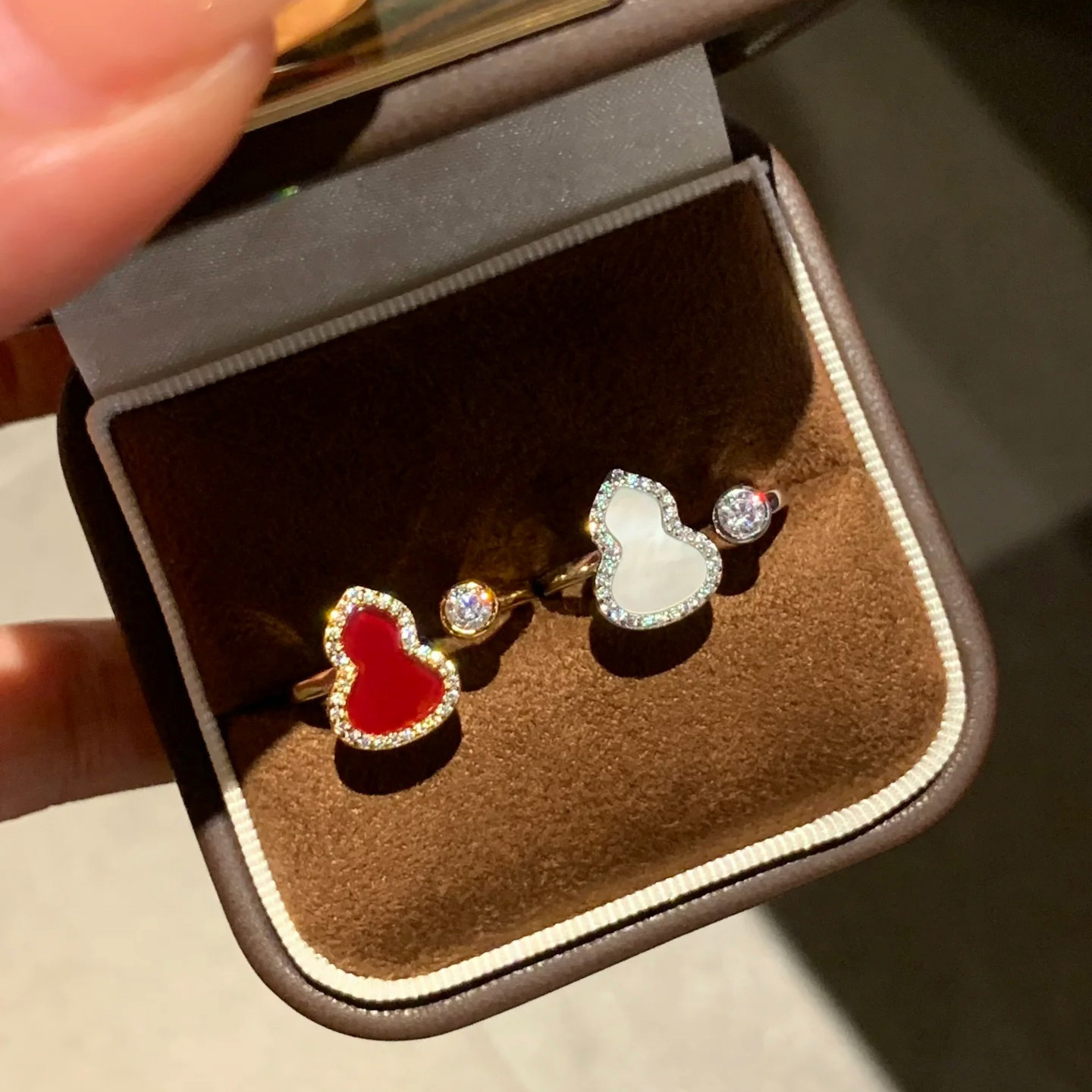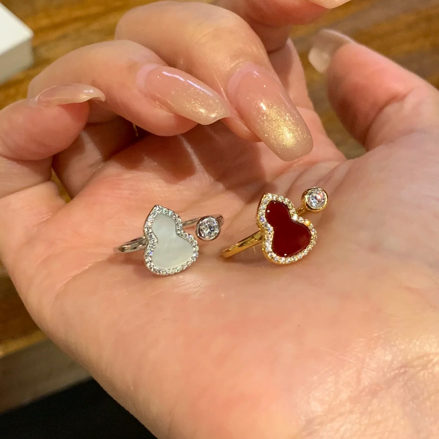 新中式镶钻红玛瑙葫芦戒指女小众设计轻奢高级感精致食白贝母