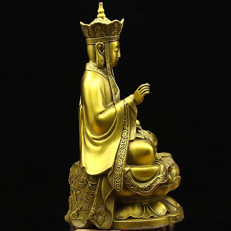 佛具台湾祥狮纯铜佛像娑婆三圣九华山地藏王菩萨铜像家用佛堂摆件