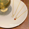 Pink Daily红色双面贝母爱心吊坠钛钢项链女简约锁骨链装饰毛衣链