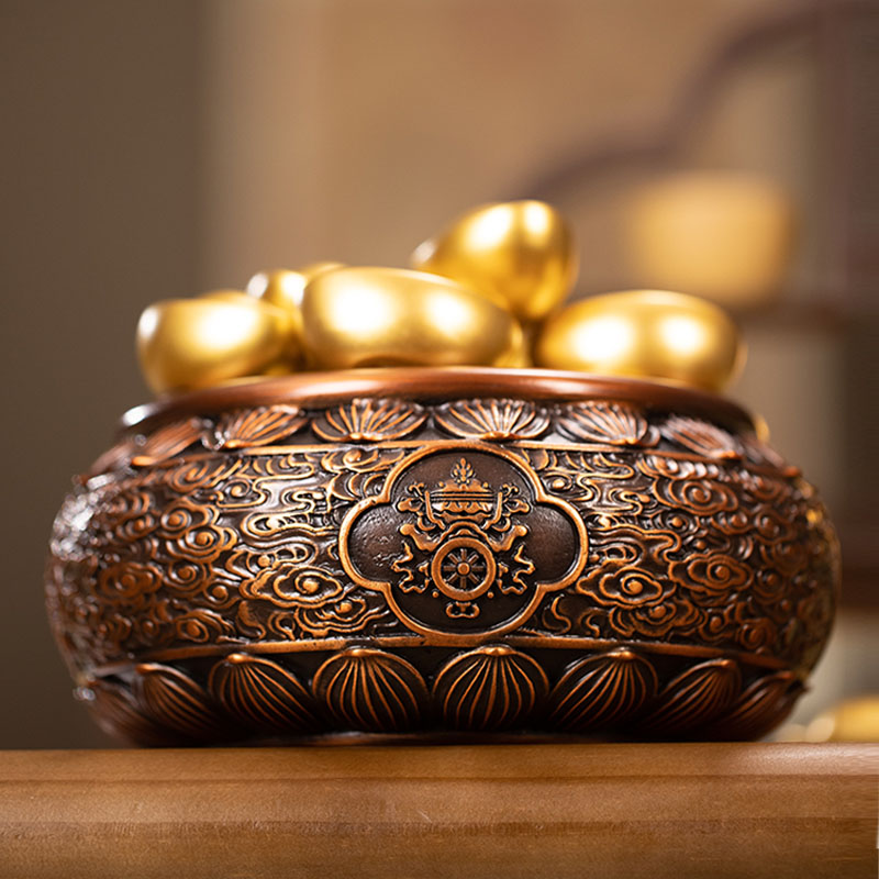 朱炳仁铜 八方来财聚宝盆 开业家居客厅桌面高档工艺品装饰品礼品