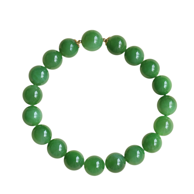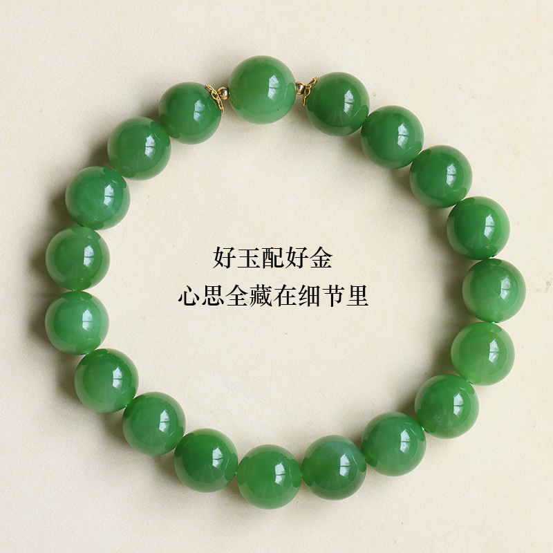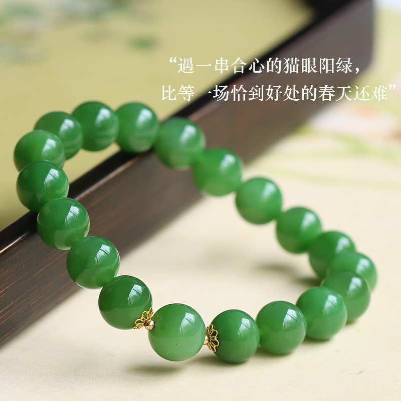 【孤品】金枢转碧-18k金猫眼阳绿和田碧玉手链亲宝水晶手串女款