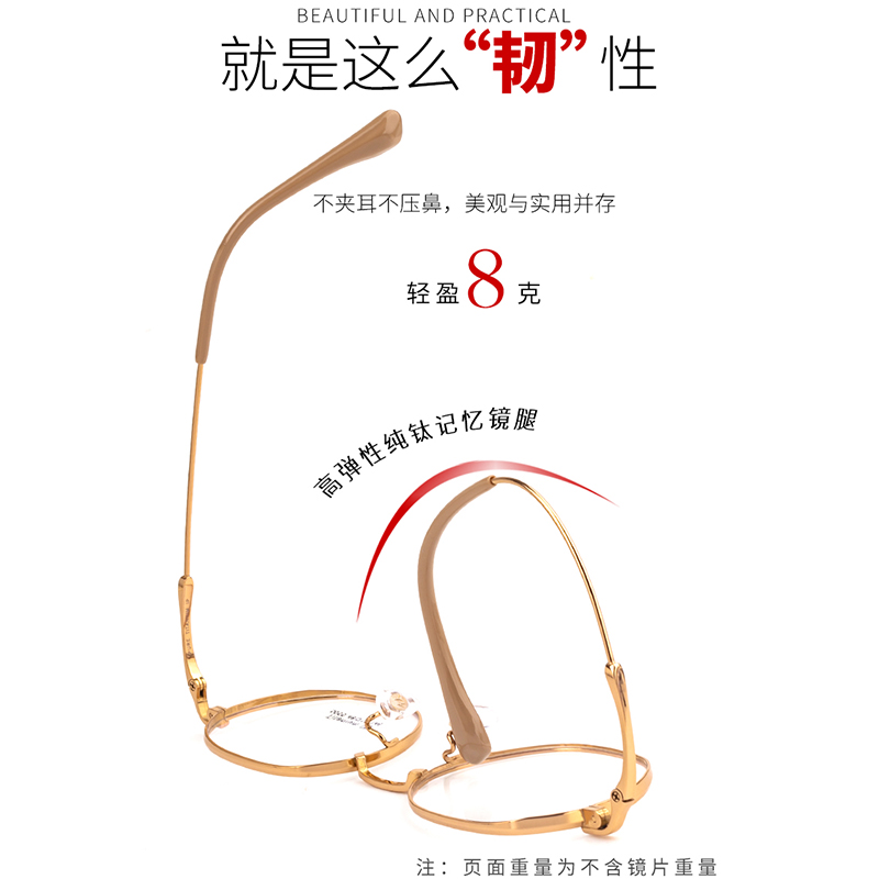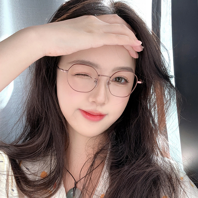 银色复古文艺纯钛眼镜女素颜小框可配近视高度数超轻方圆镜框5055