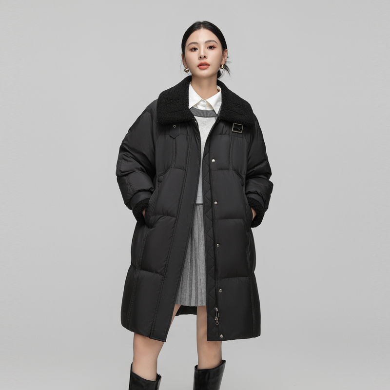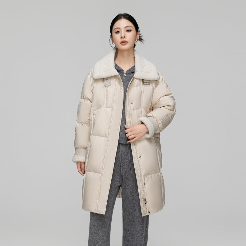 雪中飞2025冬新款女士中长款羽绒服翻领皮毛时尚保暖韩版柔软
