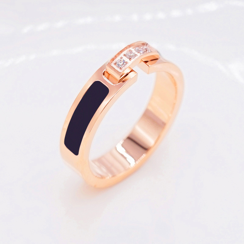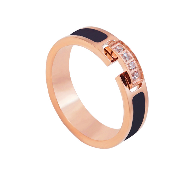 厂家直销简约时尚玫瑰金镶嵌钛钢戒指情侣四颗钻滴油戒指气质百搭