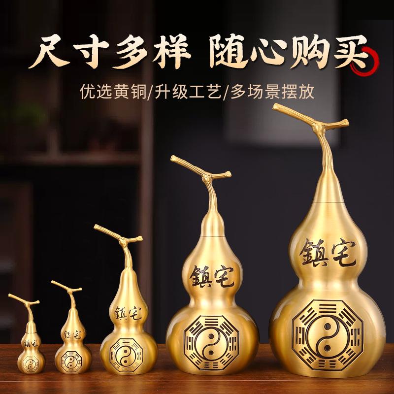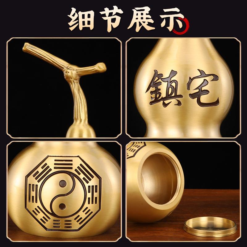 铜葫芦五帝钱挂件开 口空心装朱砂客厅招财纯黄工艺礼品摆饰镇宅