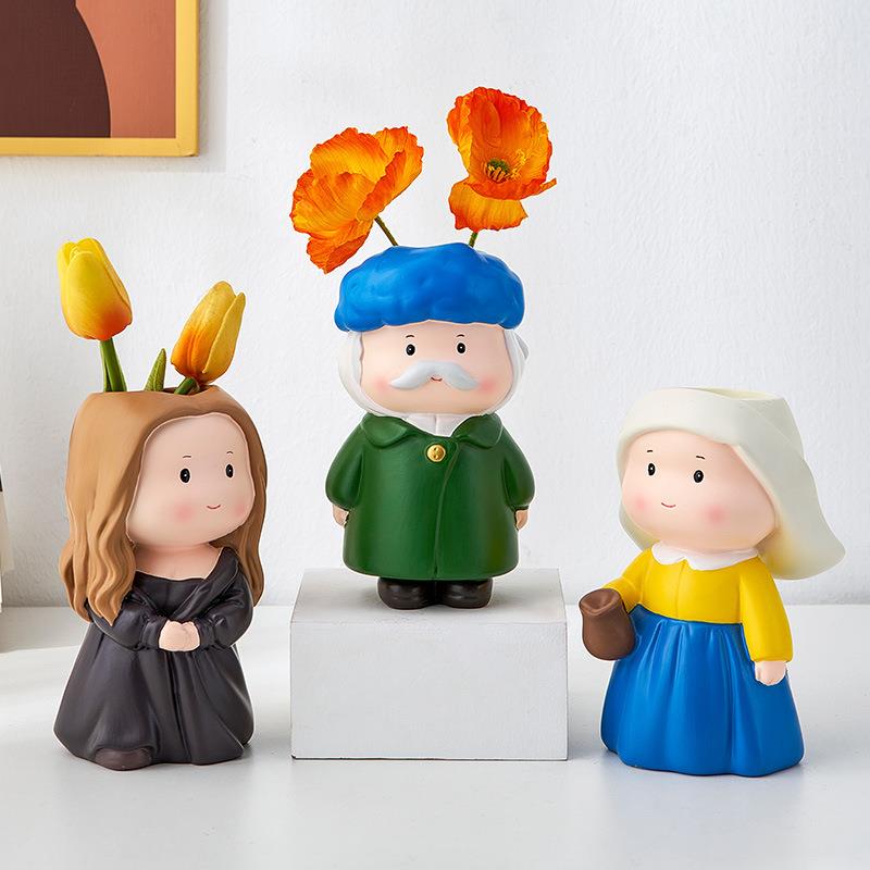 创意可爱大艺术家花瓶家居书房学生笔筒装饰品办公室桌面收纳摆件