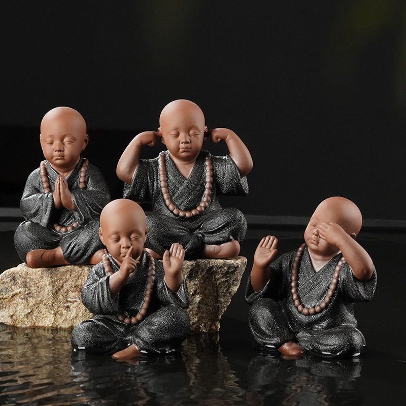 中式禅意哥窑陶瓷工艺品无相佛人物摆件创意茶室茶几桌面茶道装饰