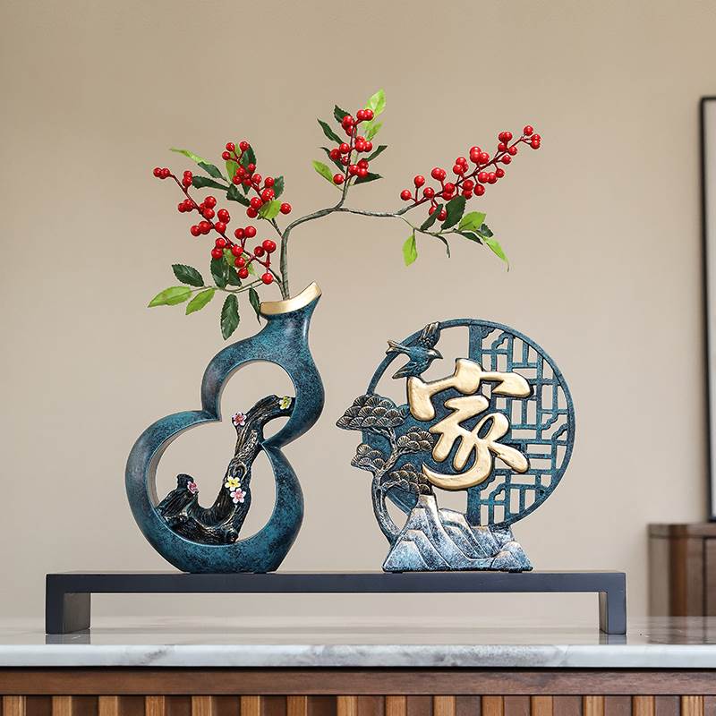 新中式客厅摆件创意礼品家居酒柜装饰品博古架办公室桌面葫芦花瓶