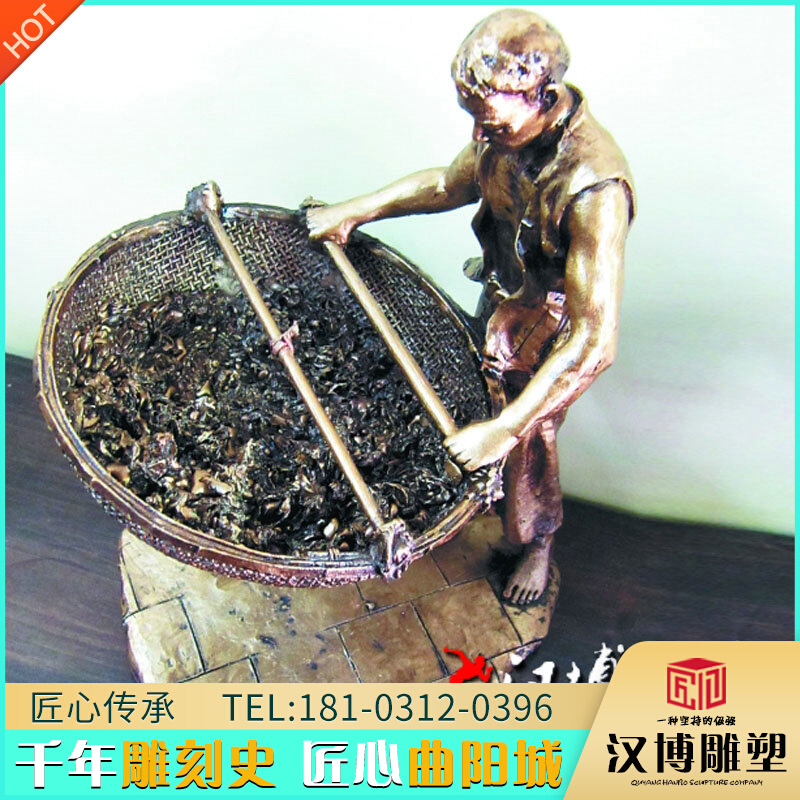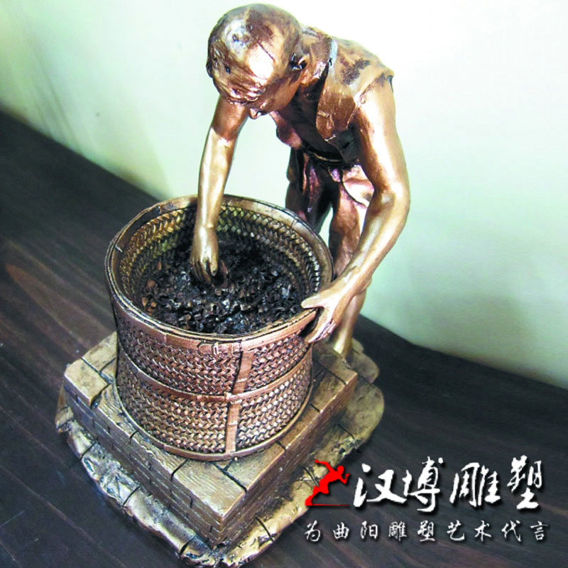 传统民俗茶文化主题雕塑玻璃纤维摇青包揉制茶人物铜雕户外园林景