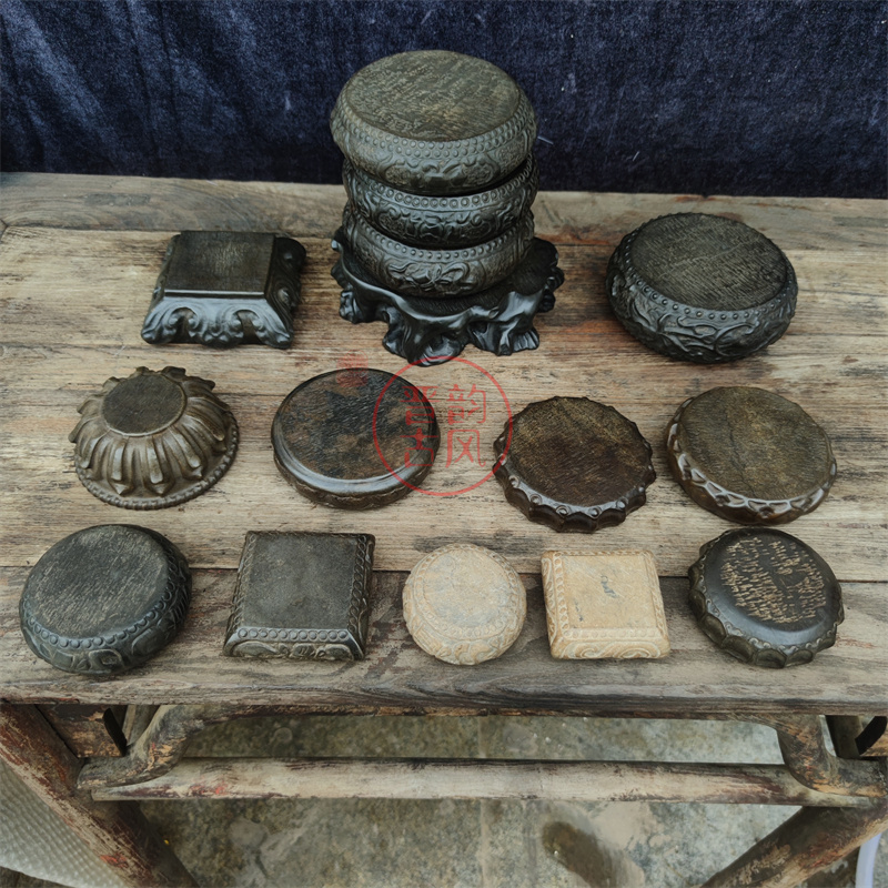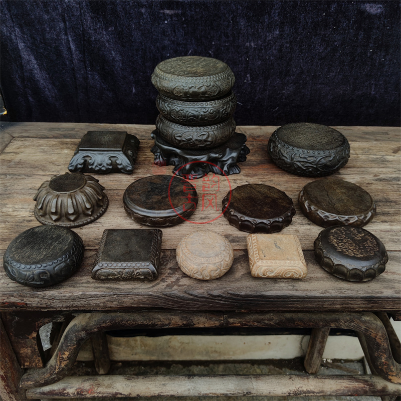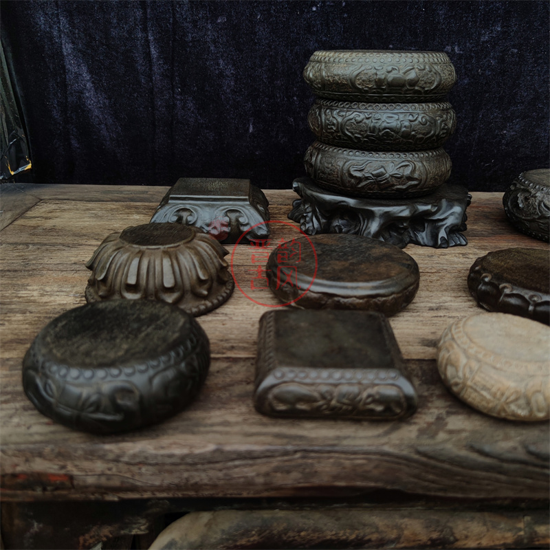 天然青石手工雕刻棱型石鼓壶承宝贝底座民俗怀旧雅居茶社实用收藏