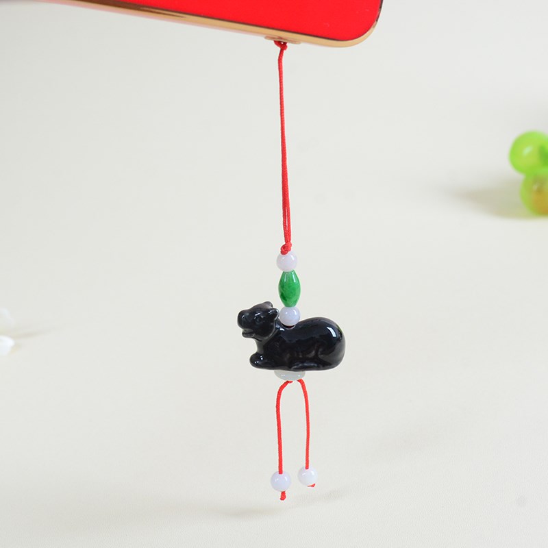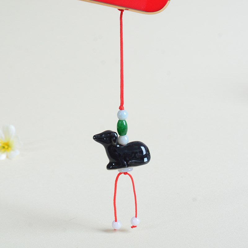 陶瓷黑色小生肖老鼠牛虎兔子龙蛇马羊猴鸡狗猪小吊坠手Z机链挂饰