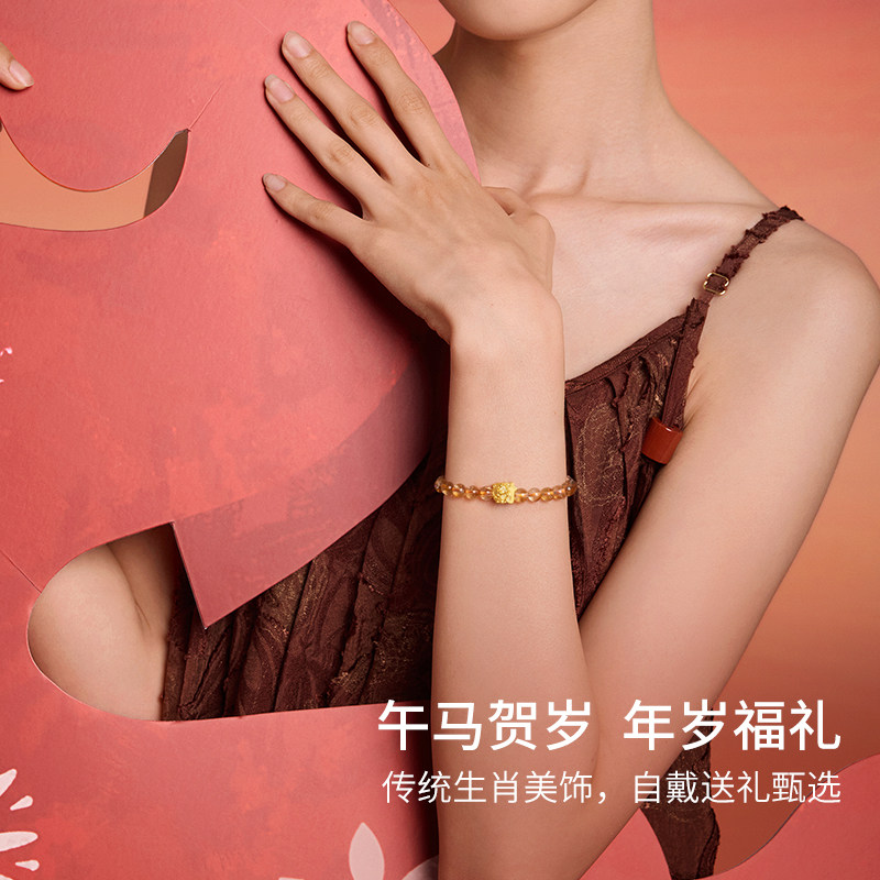 周六福5d硬金马上有福黄金手串定价女生肖吉马迎福手饰送圣诞礼物