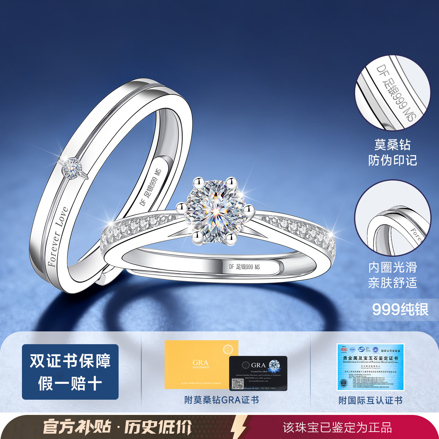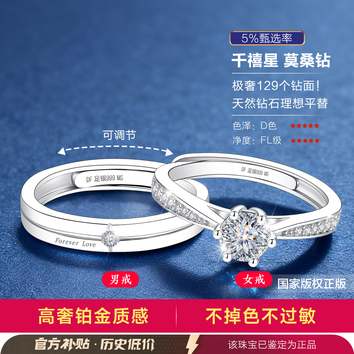银戒指999纯银情侣对戒情侣款一对莫桑石钻石莫桑钻钻戒结婚婚戒