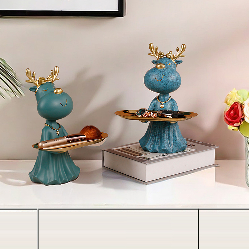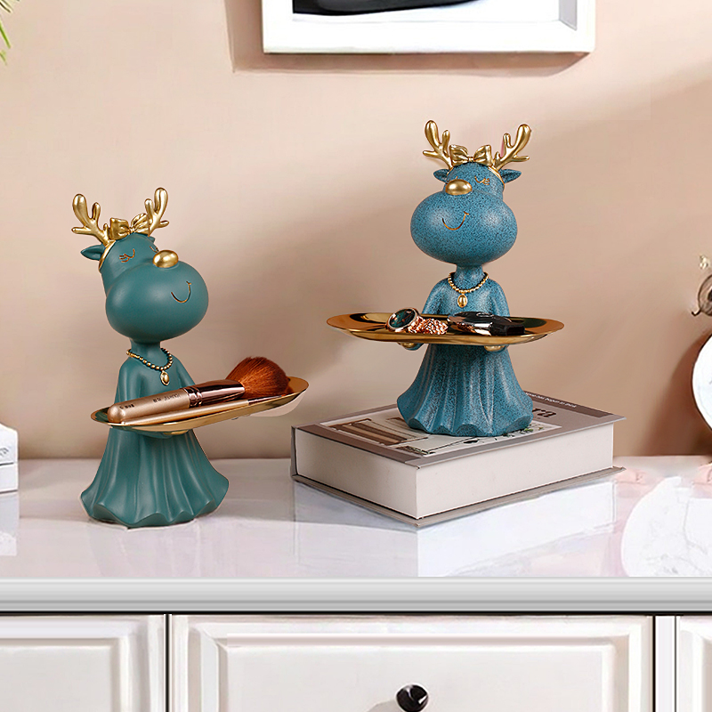 轻奢鹿托盘卧室梳妆台收纳首饰摆放装饰品玄关放钥匙摆件结婚送礼