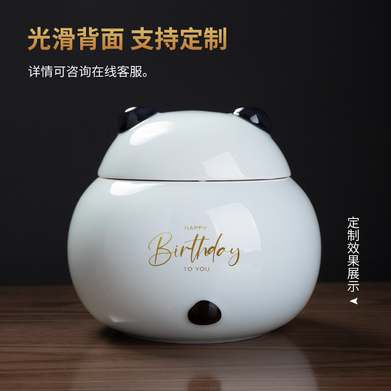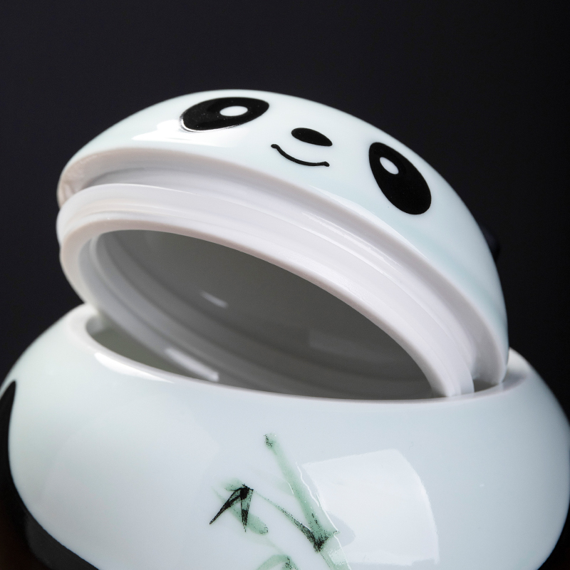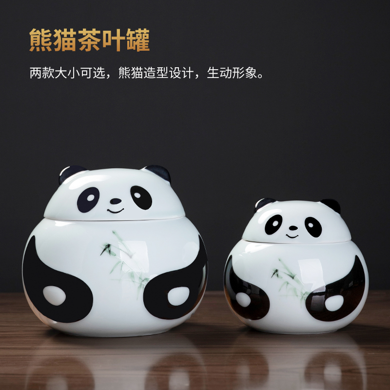 东方泥土熊猫创意茶叶罐中式陶瓷茶仓摆件礼品密封罐茶室桌面装饰