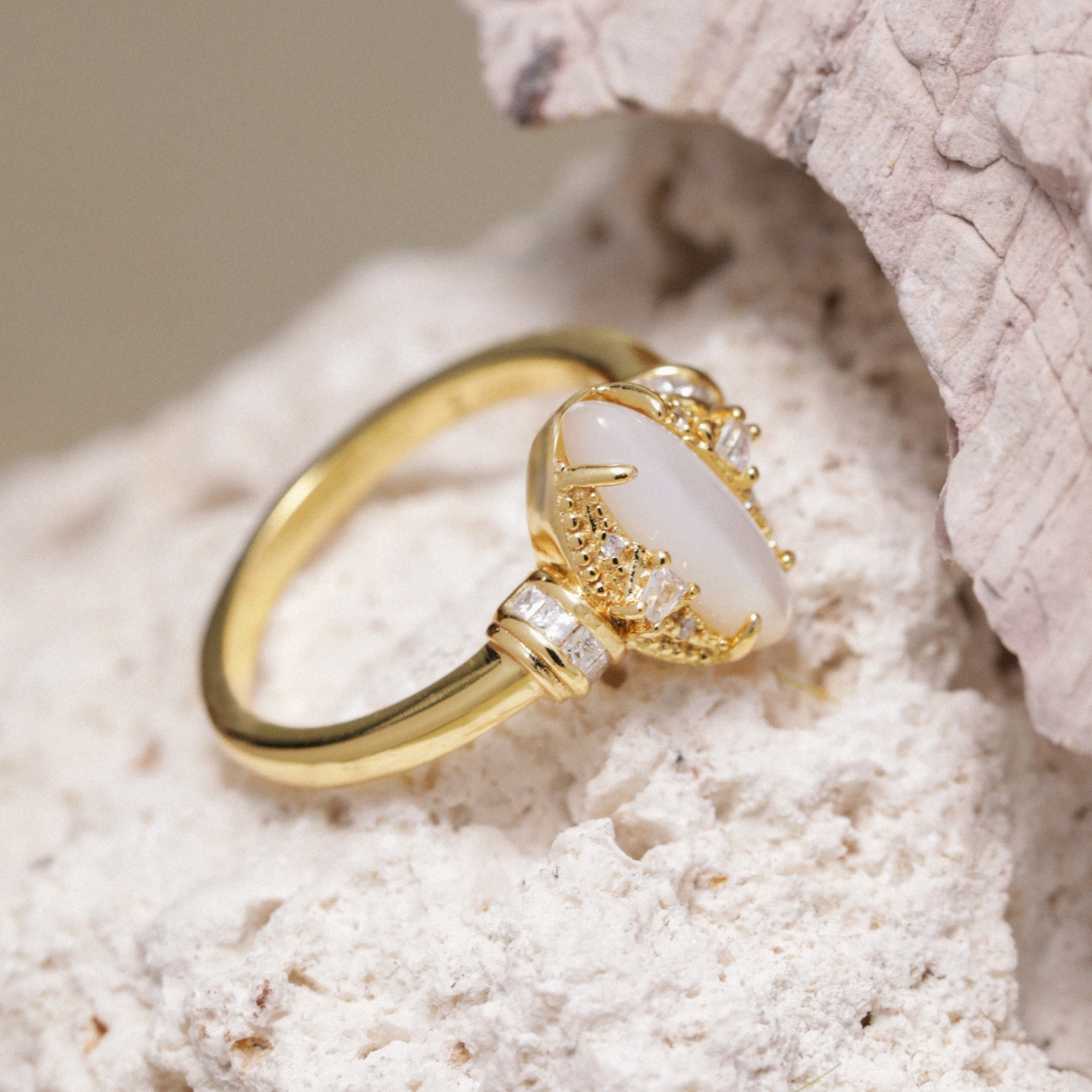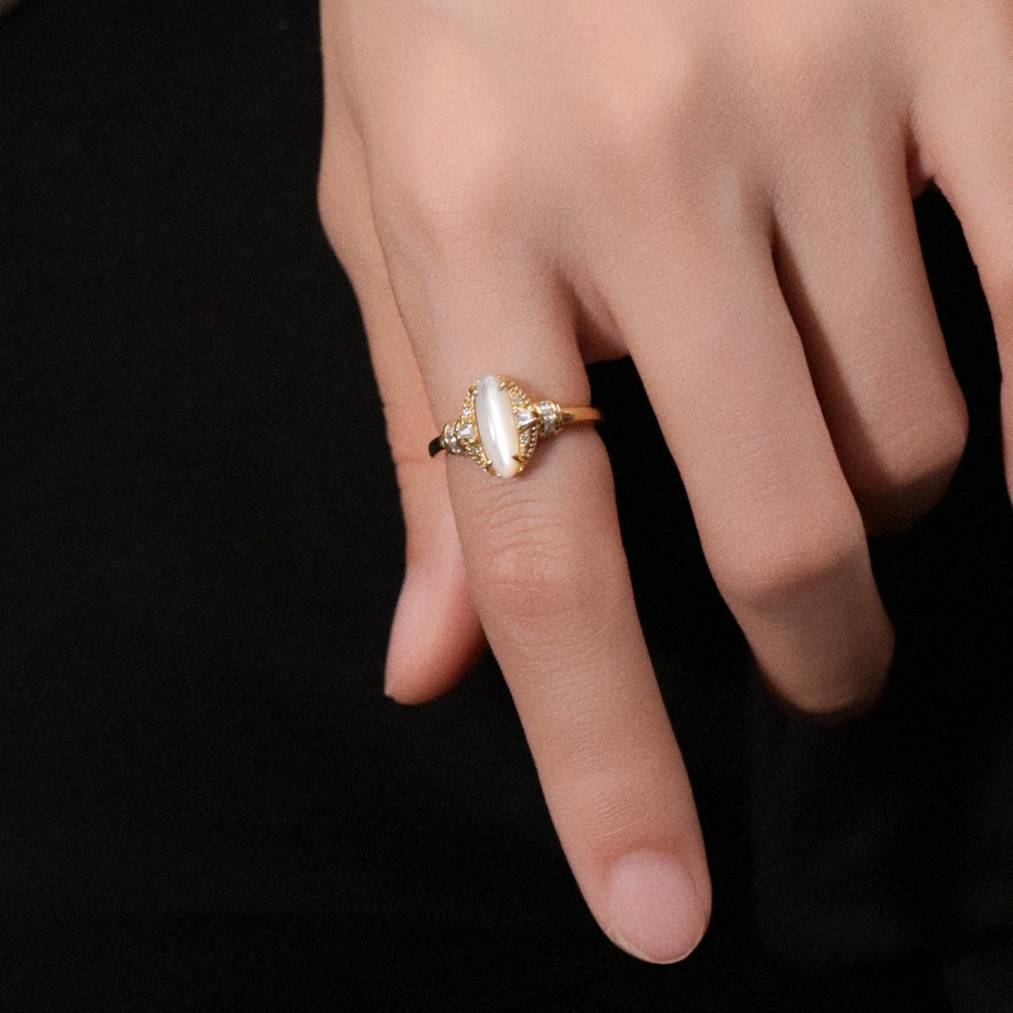 露晞薾曼原创设计白贝戒指银镀金镶钻复古轻奢高级感小众叠带指环