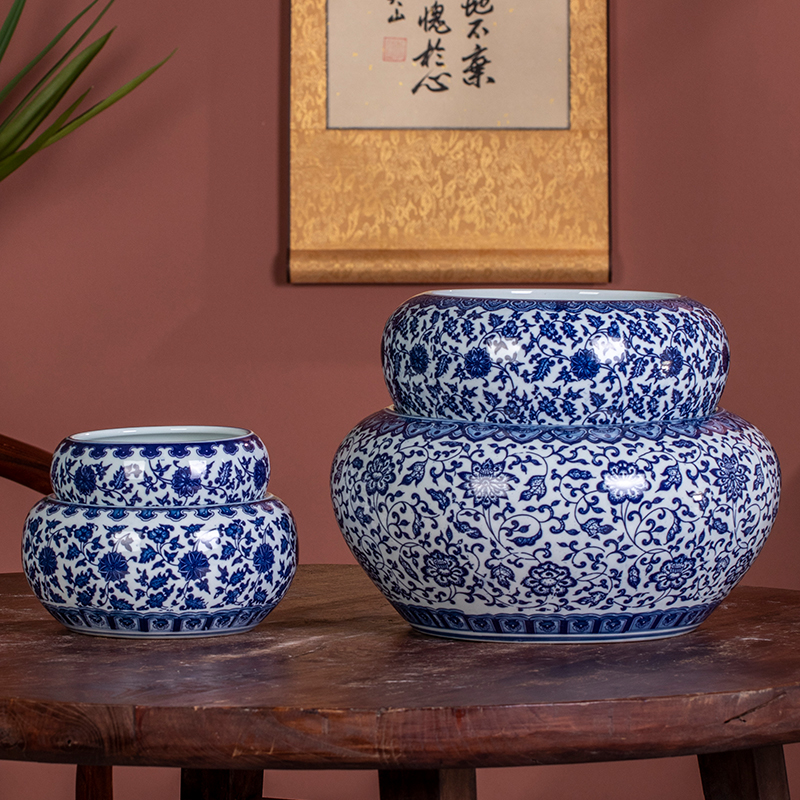 景德镇陶瓷器青花陶瓷笔洗/笔筒 可作鱼缸烟灰缸多功能摆件
