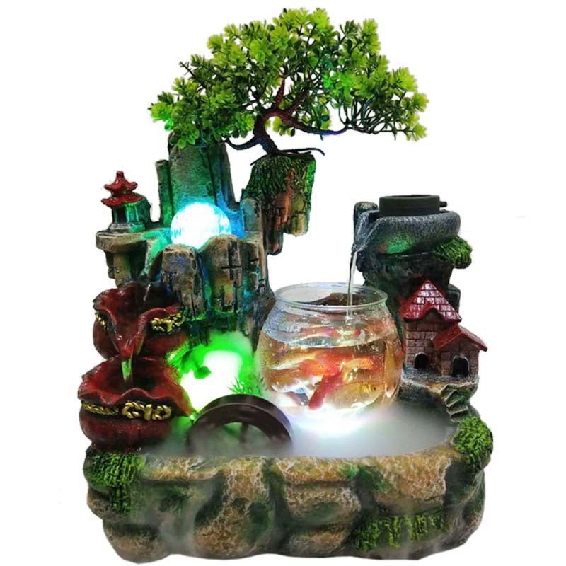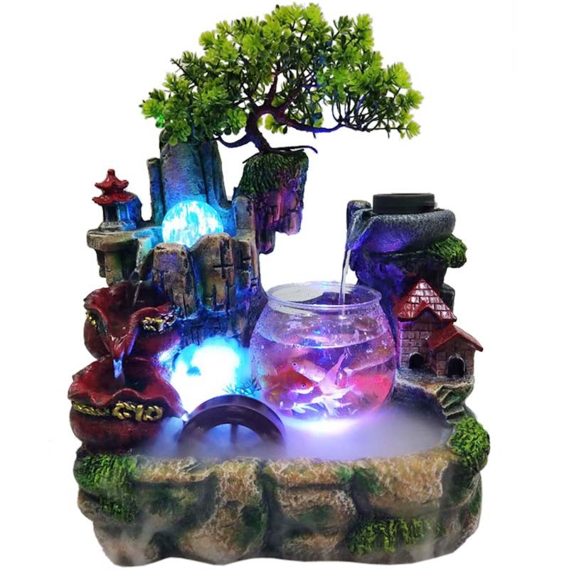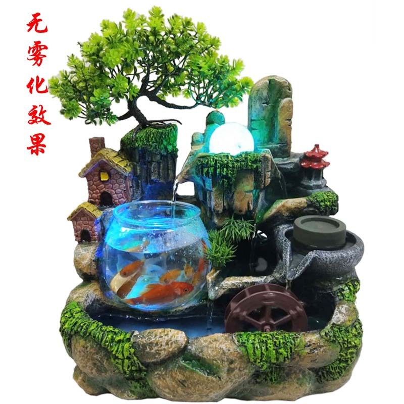 地中海树创意脂假山鱼缸客厅办公室桌面盆景装饰喷泉流水摆件