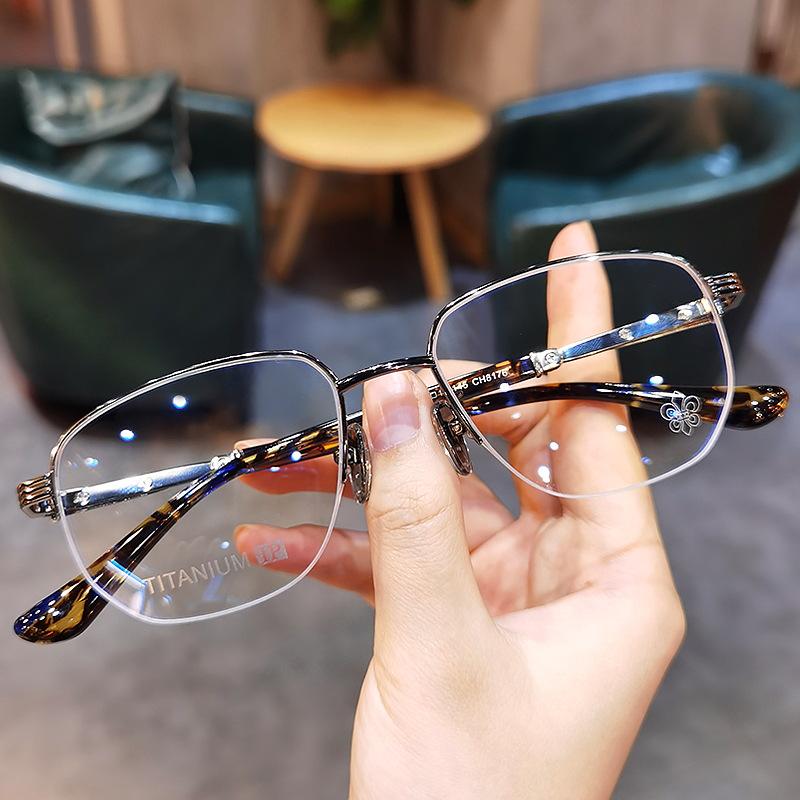 简丹萝心复古半框男女百搭潮时尚眼镜框超轻钛可配防蓝光近视
