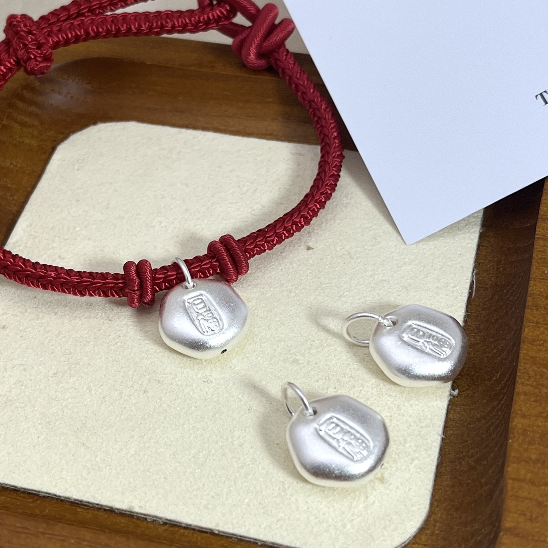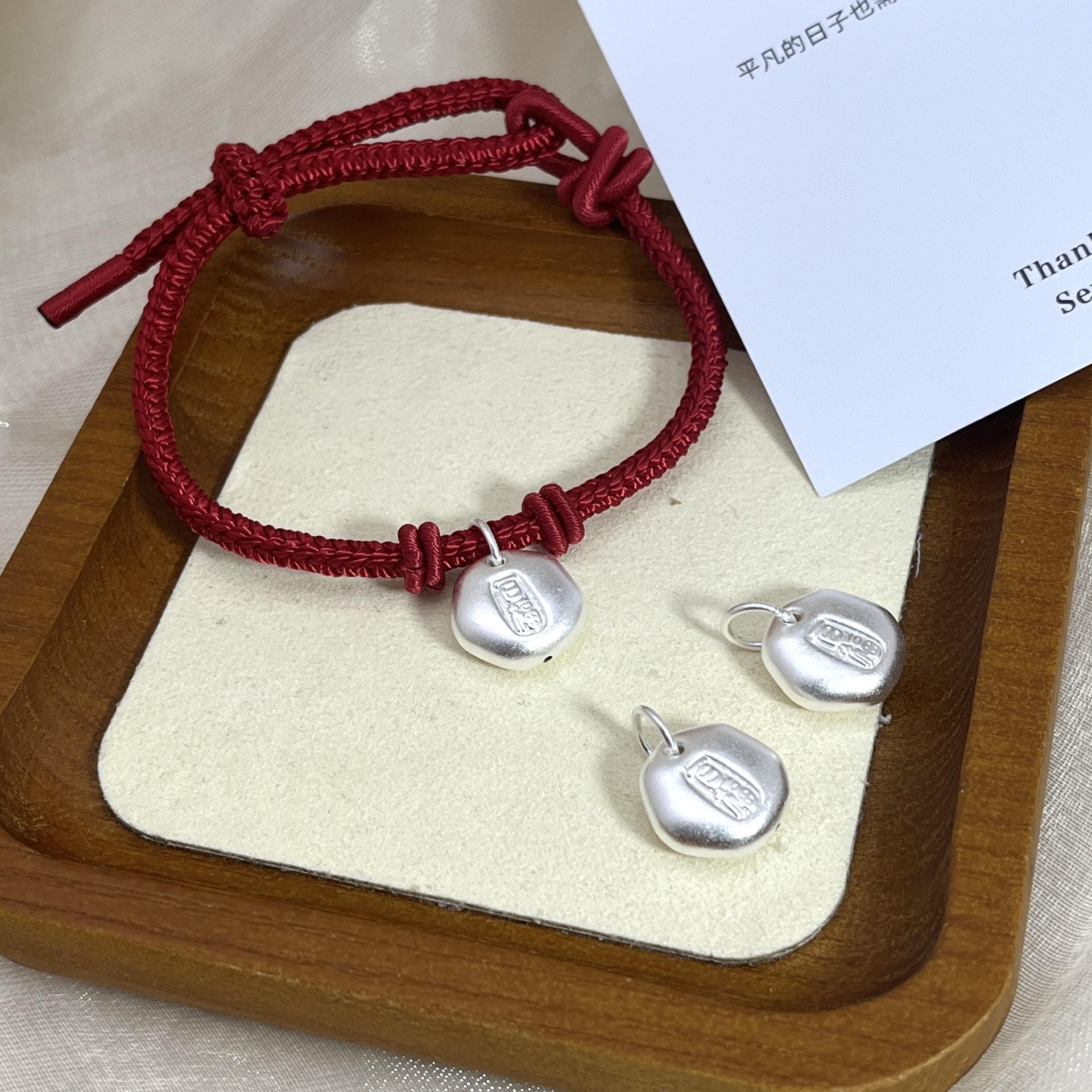 s925纯银红绳手链女古法小胖副吊坠红绳编织手饰小众简约时尚手环
